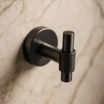Charakterystyczna, żłobiona głowica nie tylko przyciąga spojrzenie, ale wnosi do wnętrza rytm – wyczuwalny w dotyku, powtarzalny, intrygujący. Całość osadzona jest w spokojnej geometrii, która porządkuje przestrzeń, nie odbierając jej indywidualności.