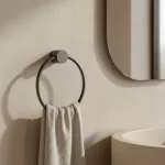 Wieszak na ręcznik z kolekcji Essia wyróżnia się prostą, geometryczną linią i solidną konstrukcją. Wykonany z mosiądzu, stanowi funkcjonalny i stylowy element wyposażenia łazienki.
