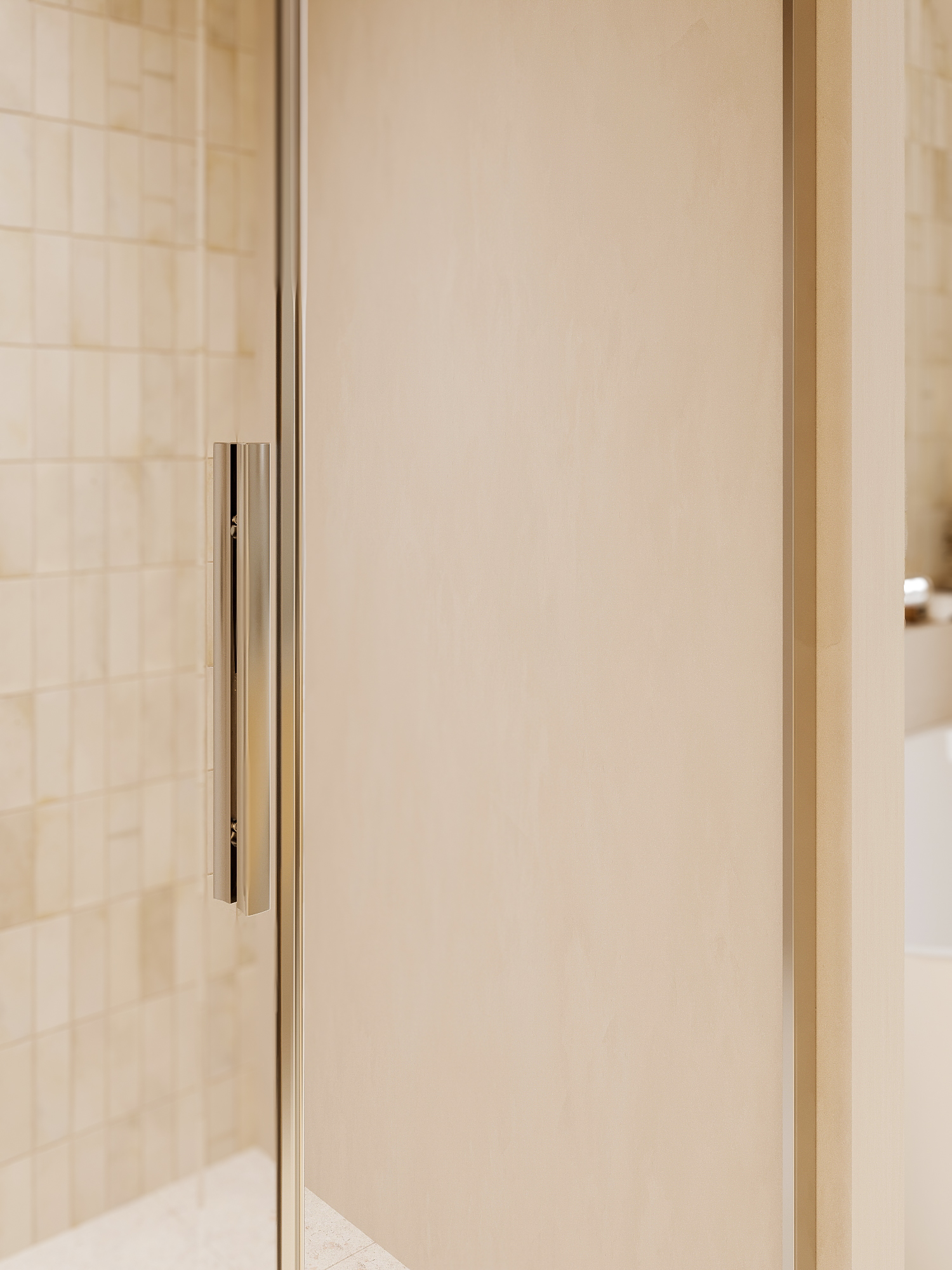 Drzwi prysznicowe Eternal przeznaczone są do montażu we wnęce – zarówno na brodziku, jak i bezpośrednio na posadzce – co daje dużą swobodę aranżacji i pozwala dopasować je do różnych projektów łazienek. To wybór dla tych, którzy szukają subtelnego luksusu, ale oczekują także realnej wygody użytkowania na co dzień.