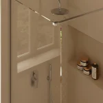 Otwarte, bezramkowe rozwiązanie inspirowane architektoniczną prostotą. Czysta tafla szkła tworzy niemal niewidzialną przegrodę.