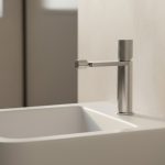 Bateria bidetowa z kolekcji z kolekcji Vellum opiera się na minimalistycznej geometrii wzbogaconej charakterystyczną żłobioną głowicą.