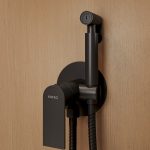 Model wyposażono w mieszacz, który umożliwia dokładną regulację temperatury wody, zwiększając komfort codziennego użytkowania. Dodatkowy przycisk blokujący wypływ wody zapewnia pełną kontrolę i bezpieczeństwo podczas korzystania z bidetki. Elementy wykonano z mosiądzu i stali, a ich powierzchnię zabezpieczono powłoką DURACOAT™ Electro Metal Finish, tworzącą trwałą, odporną na wilgoć i użytkowanie warstwę wykończeniową. Zastosowana HYDROPHOBIC+ Layer ogranicza osadzanie się kamienia i ułatwia utrzymanie zestawu w czystości. Technologia AQUASTREAM™ zapewnia równomierny, stabilny strumień wody.