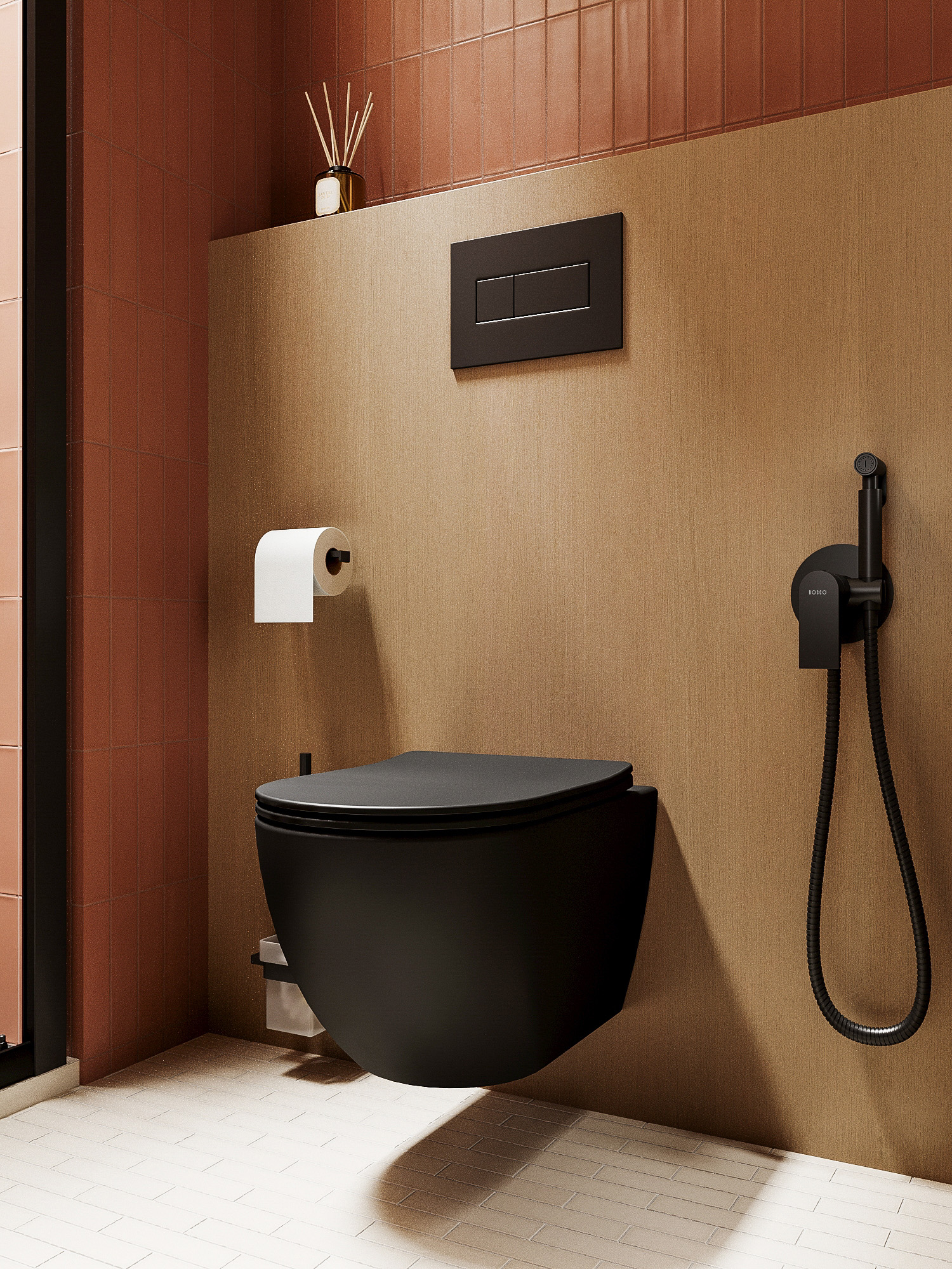 Bidetka Arcos sprzedawana jest w komplecie z elementami podtynkowymi, co pozwala zachować czystą, uporządkowaną formę instalacji w strefie WC.