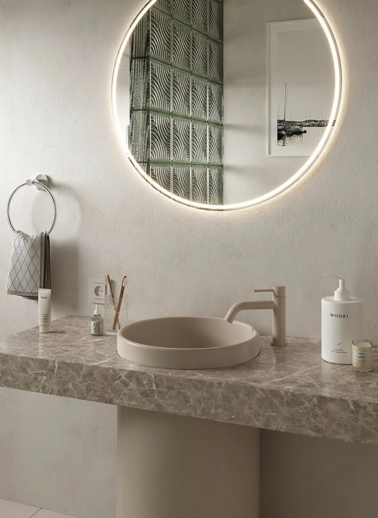 Niska bateria nablatowa z kolekcji Structa została zaprojektowana z myślą o harmonii linii i wygodzie codziennego użytkowania. Jej proporcje oraz geometryczna forma tworzą spójny rytm we wnętrzu łazienki.
