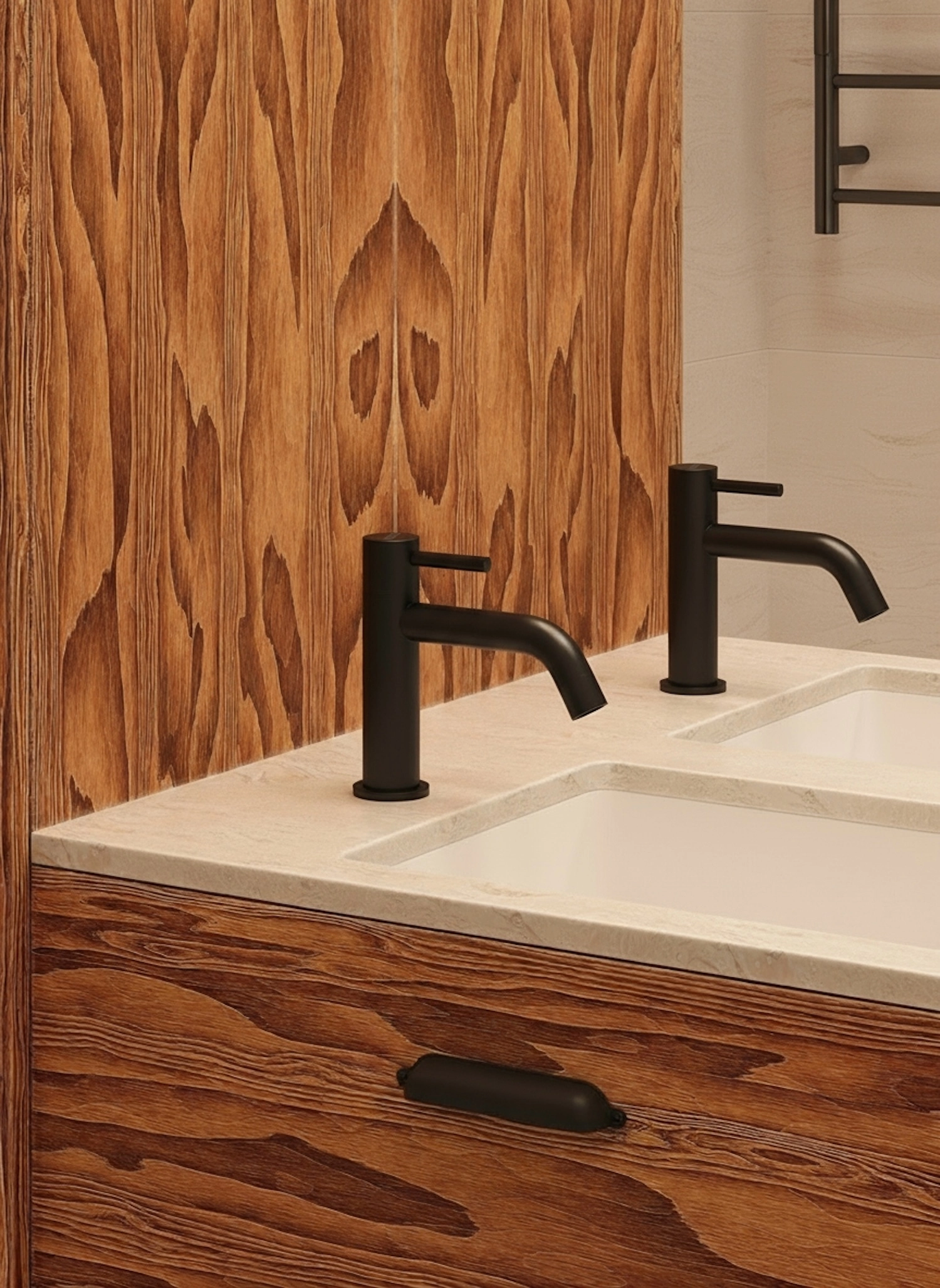 Niska bateria nablatowa z kolekcji Structa została zaprojektowana z myślą o harmonii linii i wygodzie codziennego użytkowania. Jej proporcje oraz geometryczna forma tworzą spójny rytm we wnętrzu łazienki.