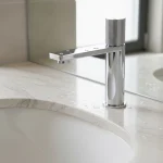 Charakterystyczna, żłobiona głowica tworzy subtelny kontrast dla spokojnej geometrii całej formy. Korpus ze stali szlachetnej zabezpieczono powłoką DURACOAT™, co chroni powierzchnię przed zarysowaniami oraz matowieniem. Ceramiczna głowica o przedłużonej żywotności TITAN-HEART™ i system AQUASTREAM™ odpowiada za równomierny, komfortowy strumień wody, a HYDROPHOBIC+ Layer ogranicza osadzanie się kamienia, ułatwiając utrzymanie baterii w czystości.