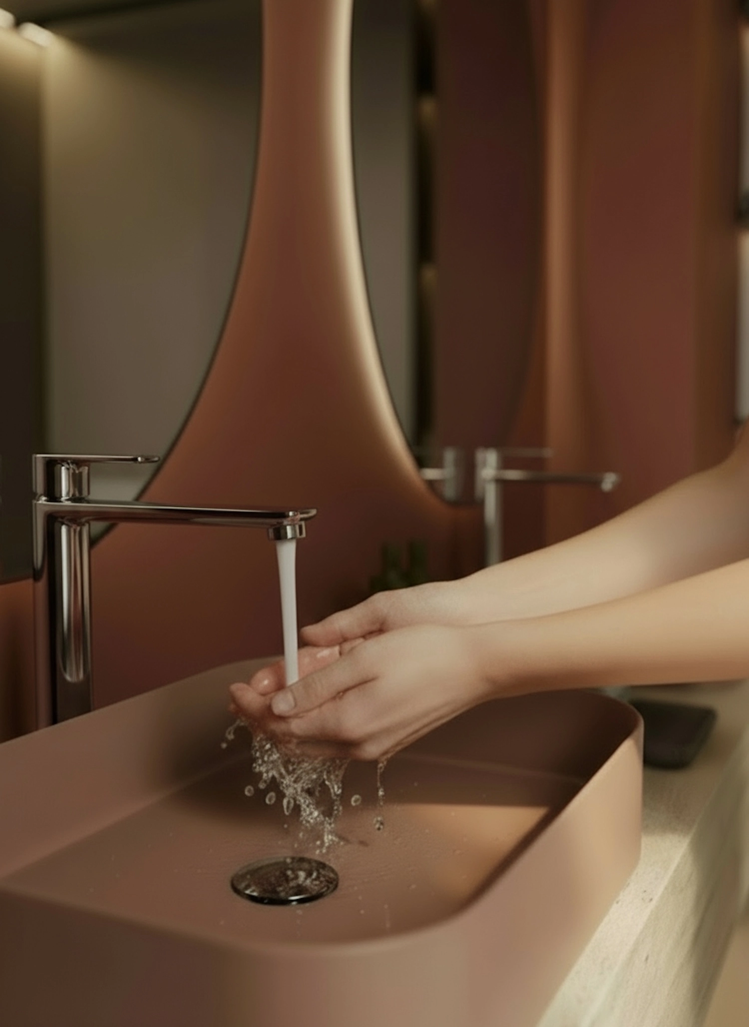 Jej smukła sylwetka oraz podwyższona konstrukcja świetnie współgrają z umywalkami nablatowymi, wprowadzając do wnętrza wizualną lekkość i porządek. Powierzchnia stali zabezpieczona technologią DURACOAT™ zachowuje idealny wygląd, chroniąc przed zarysowaniami i utratą blasku. Specjalna warstwa HYDROPHOBIC+ Layer ogranicza osadzanie się wody i kamienia, a system AEROFLOW+ napowietrza strumień, zmniejszając zużycie wody. Regulator AQUASTREAM™ gwarantuje stały, równy przepływ, a głowica ceramiczna TITAN-HEART™ – płynną pracę i trwałość na lata.
