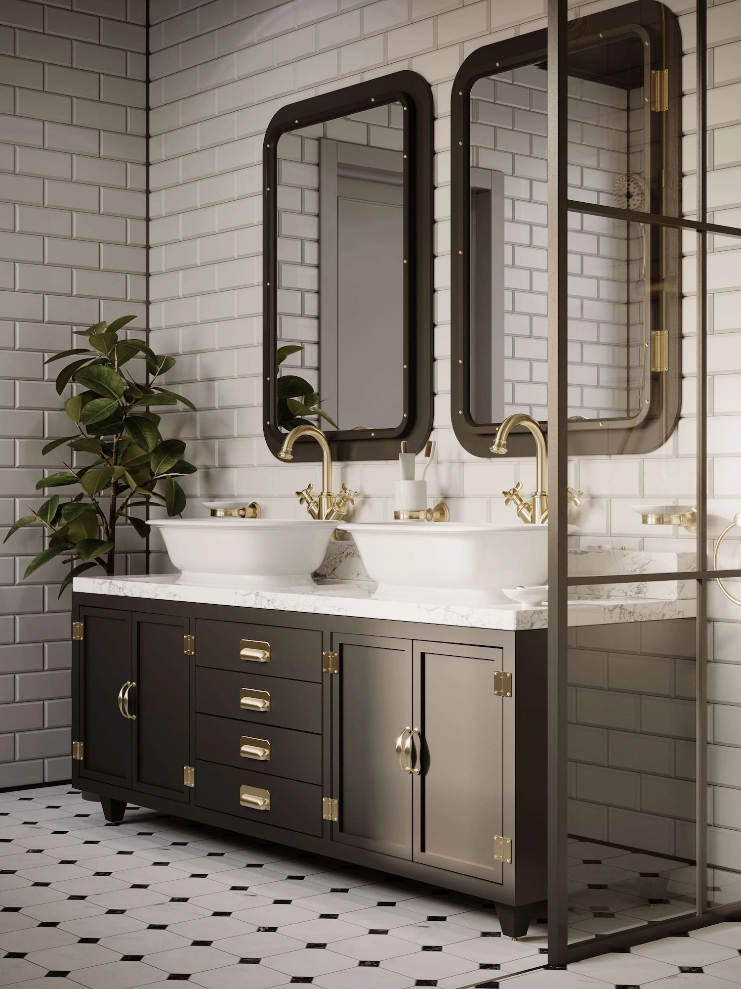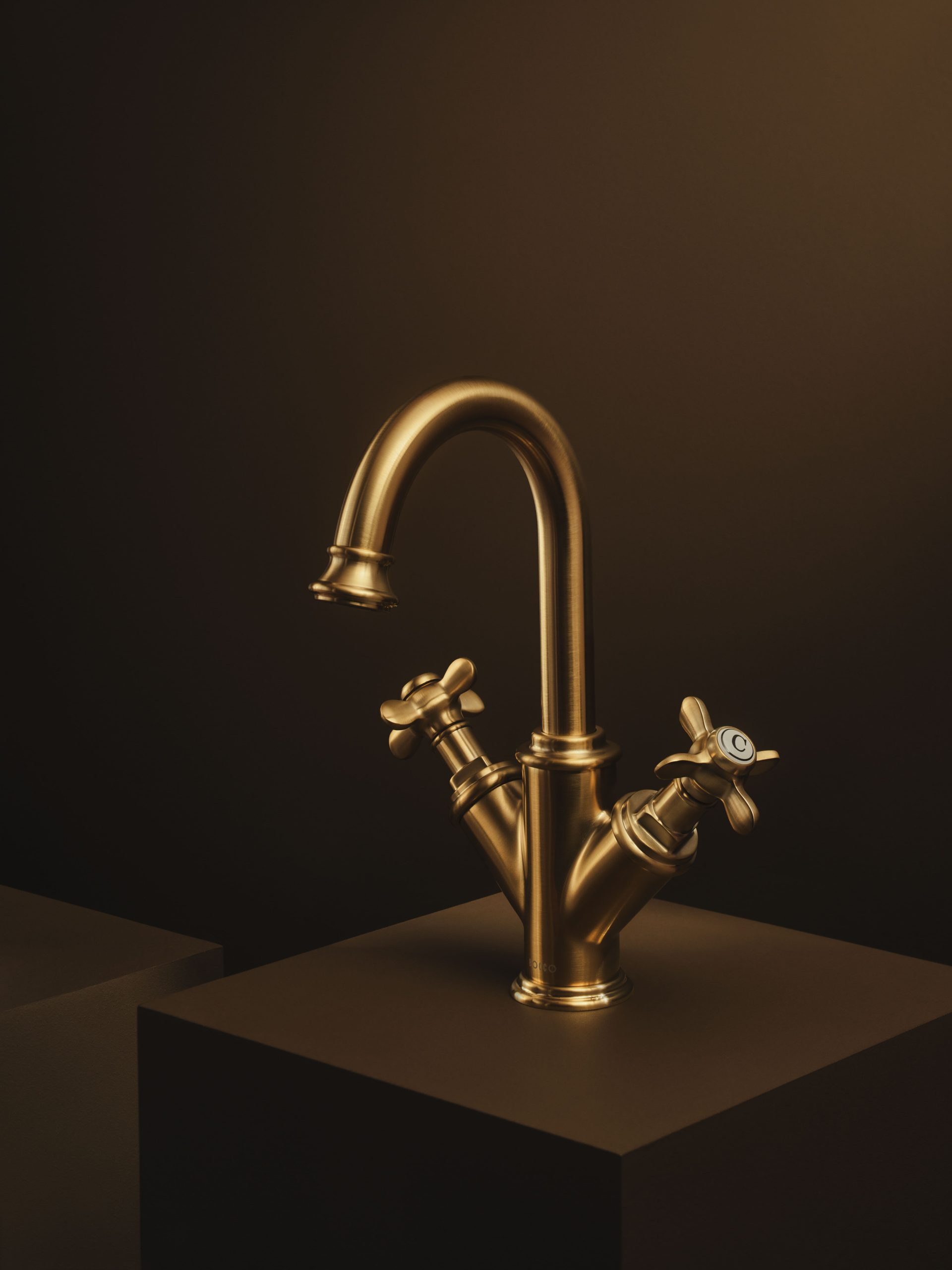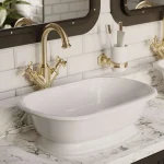 Smukła, dwuuchwytowa bateria nablatowa przywodzi na myśl elegancję dawnych wnętrz, a jednocześnie harmonijnie wpisuje się w estetykę współczesnych łazienek premium. Jej proporcje i subtelne detale sprawiają, że doskonale uzupełnia umywalki nablatowe – zwłaszcza w aranżacjach w stylu vintage, angielskim czy japandi.