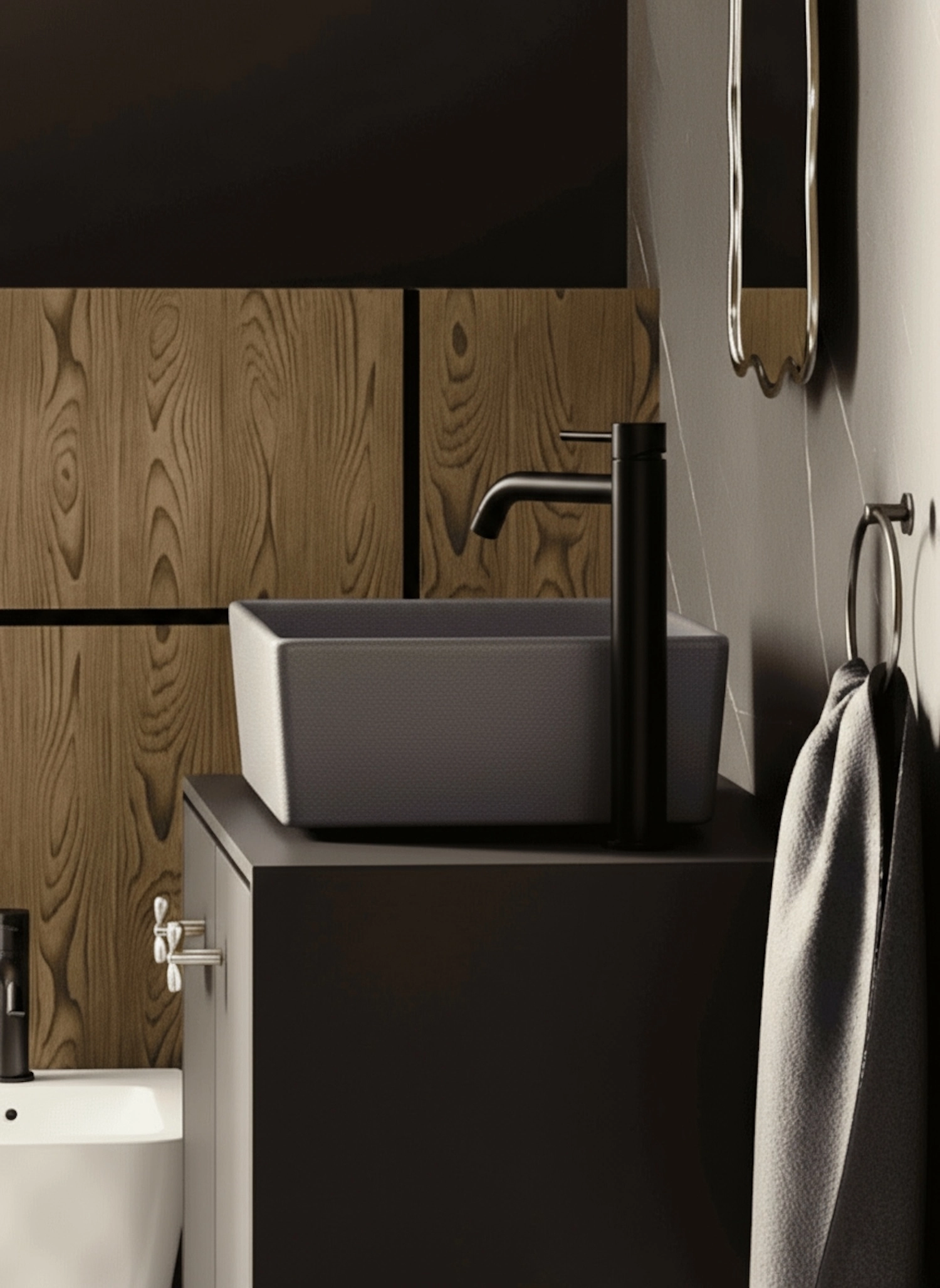 Wysoka bateria nablatowa z kolekcji Liora została zaprojektowana z myślą o nowoczesnych aranżacjach, gdzie smukła sylwetka i miękko wyprofilowana wylewka podkreślają płynność przestrzeni.
