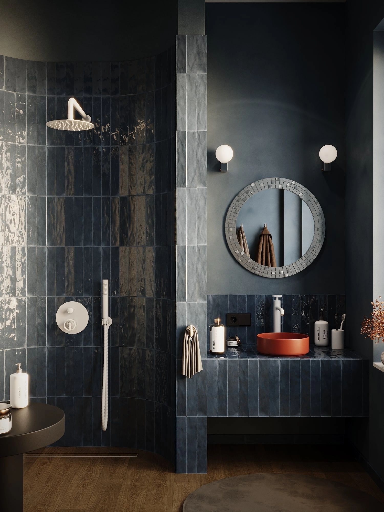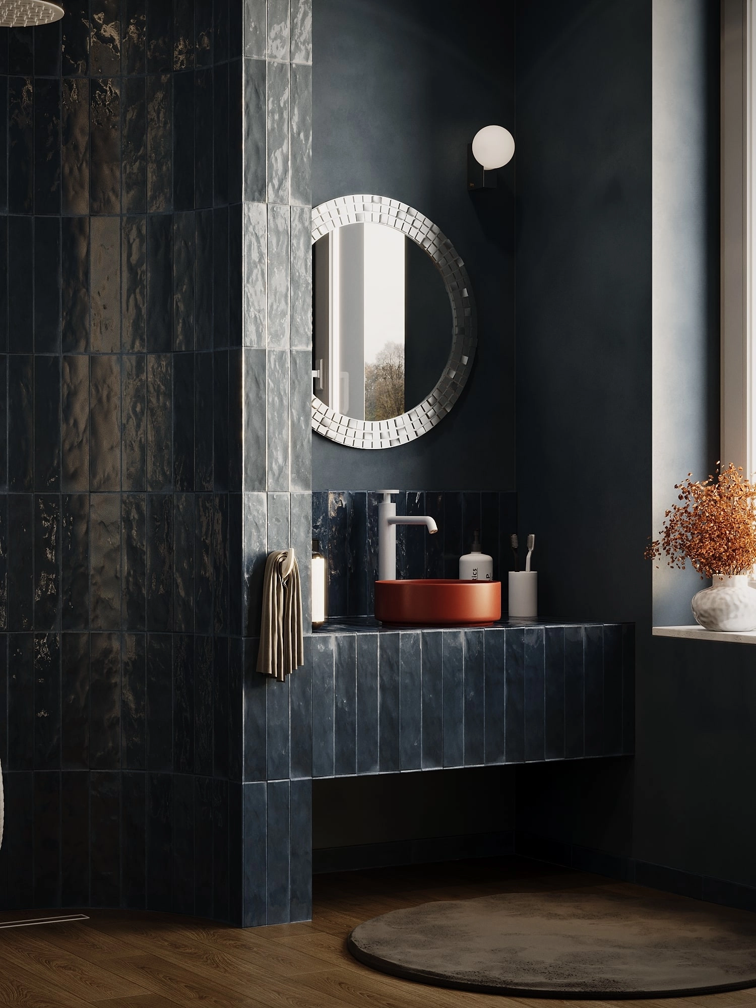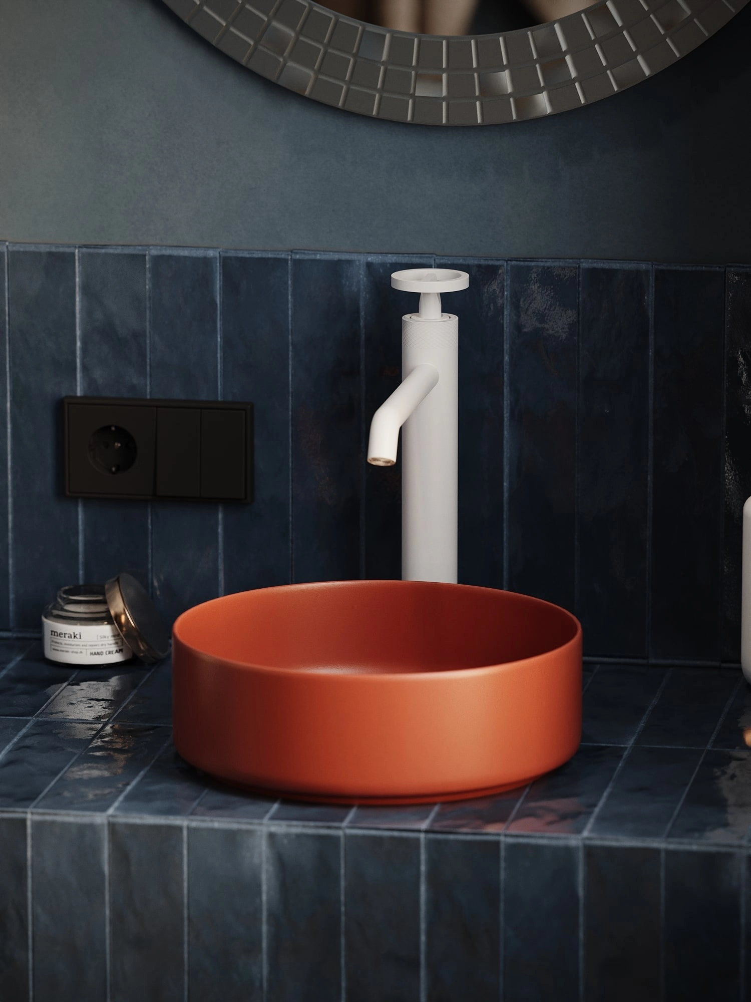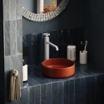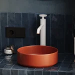 Bateria nablatowa wysoka Nebis została zaprojektowana z myślą o współczesnych umywalkach nablatowych, z którymi tworzy spójną, wertykalną kompozycję.