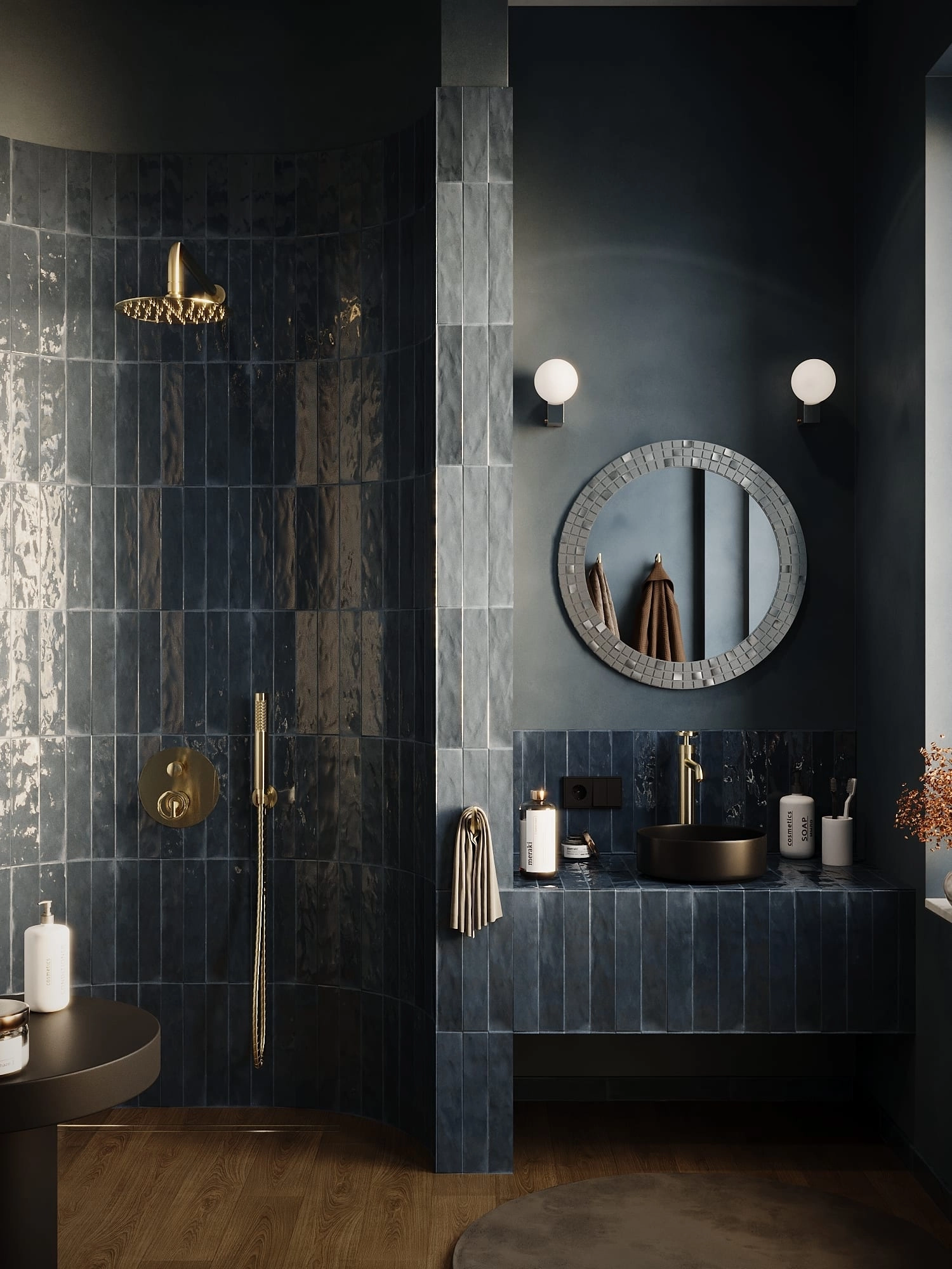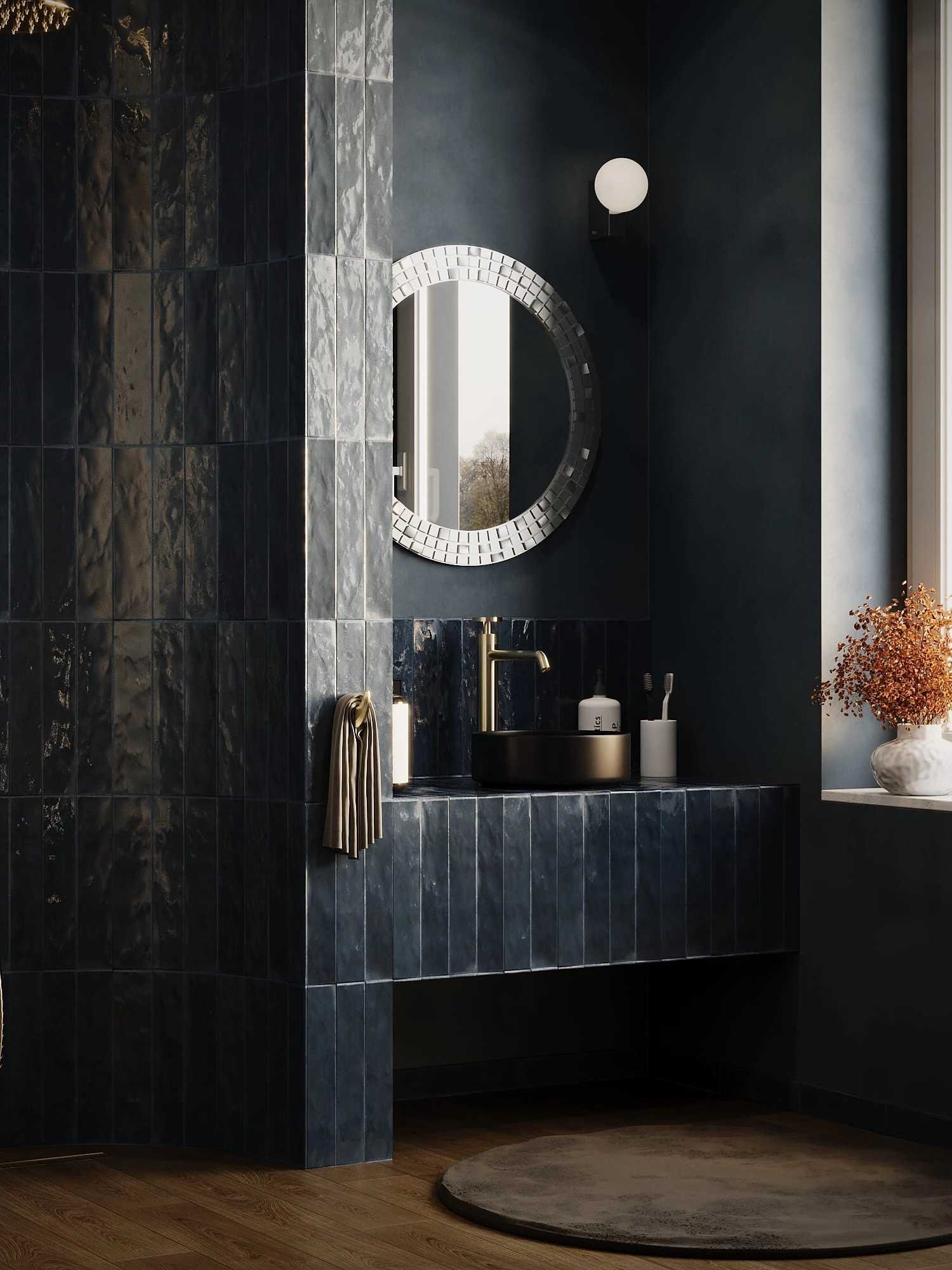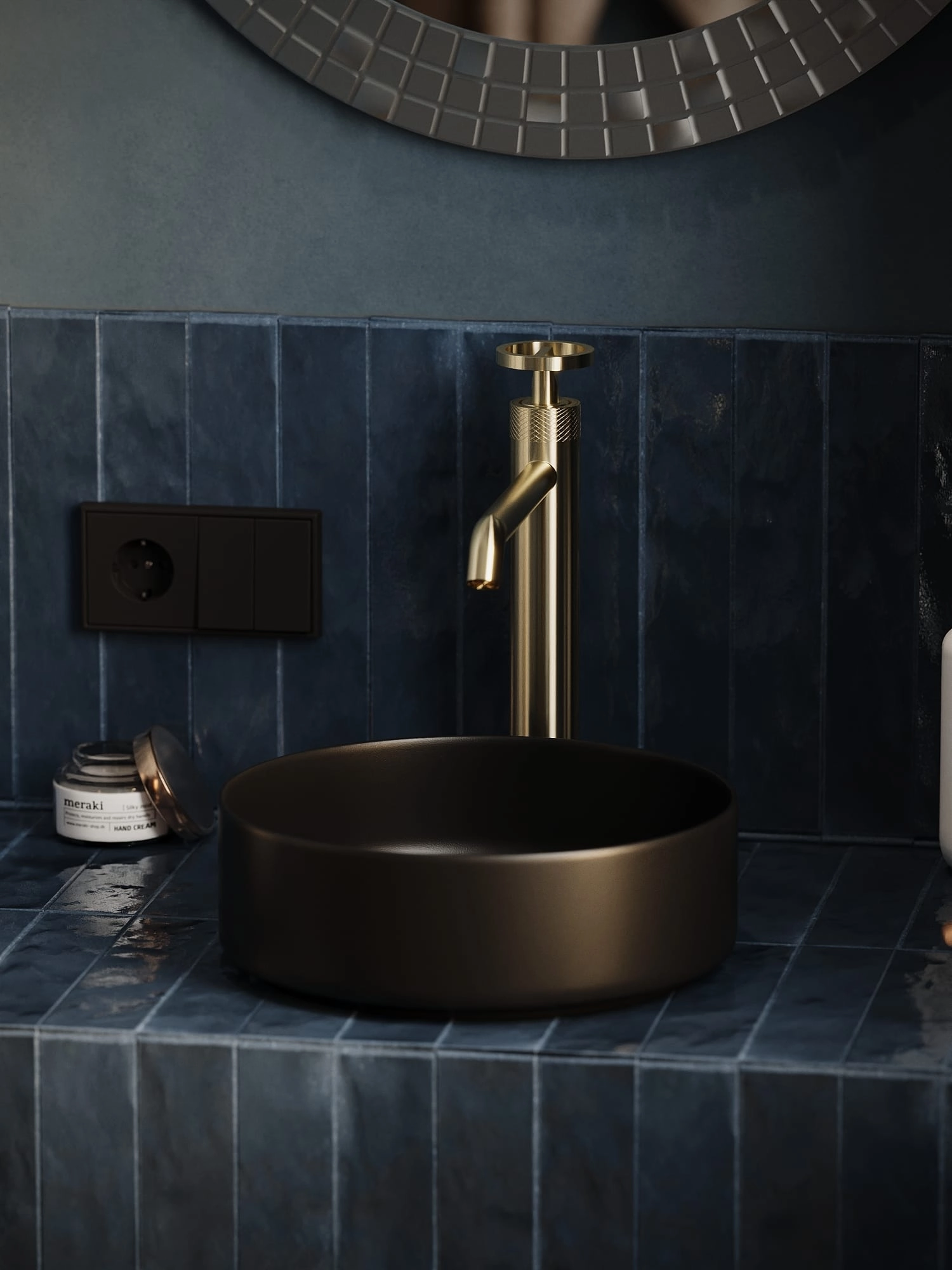 Bateria nablatowa wysoka Nebis została zaprojektowana z myślą o współczesnych umywalkach nablatowych, z którymi tworzy spójną, wertykalną kompozycję.