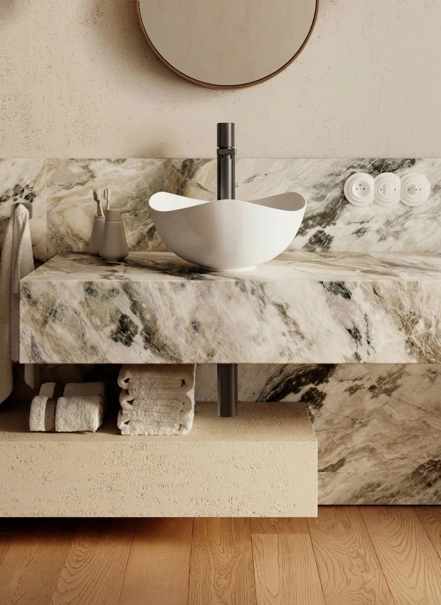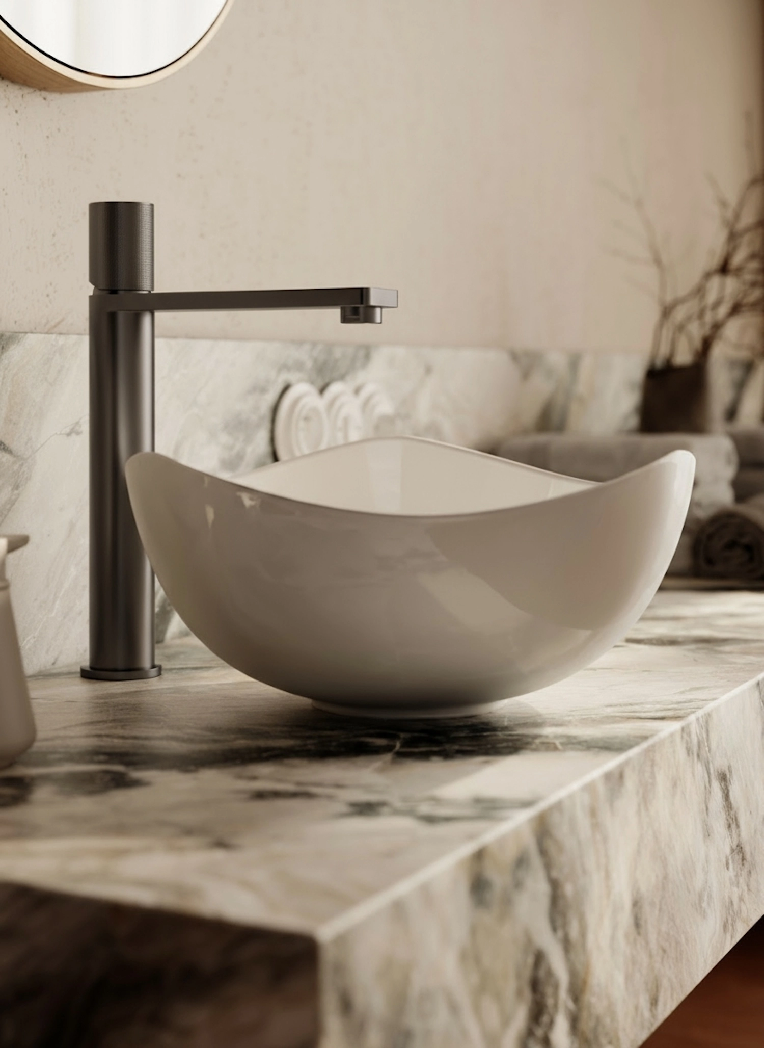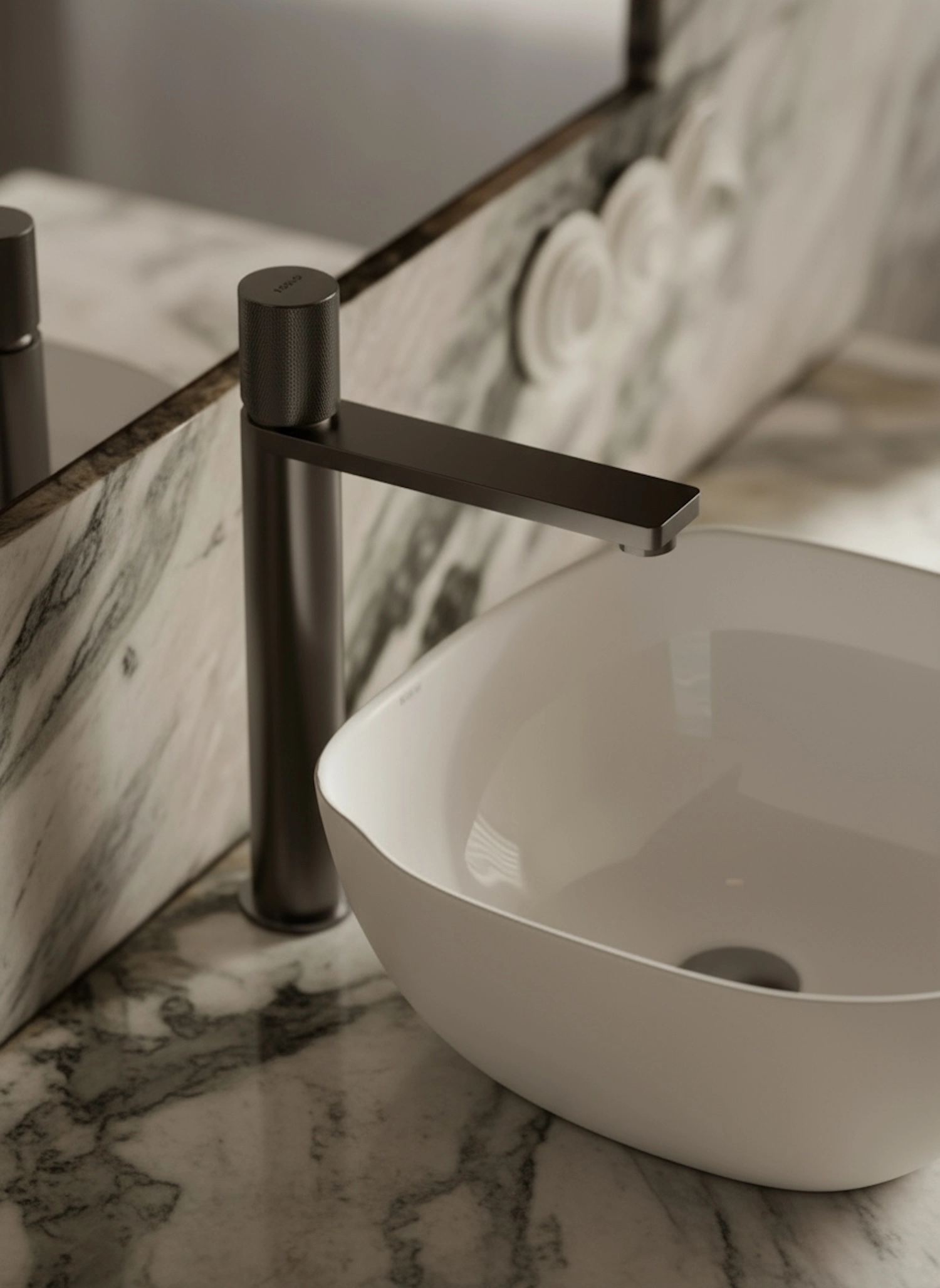 Bateria nablatowa wysoka z kolekcji Vellum sprawia, że codzienne rytuały idą w parze z pożądanym komfortem.