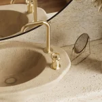Bateria nablatowa z osobnym mieszaczem z kolekcji Nebis to trzyelementowy zestaw o przemyślanej geometrii – stworzony z myślą o uporządkowanej przestrzeni umywalkowej.