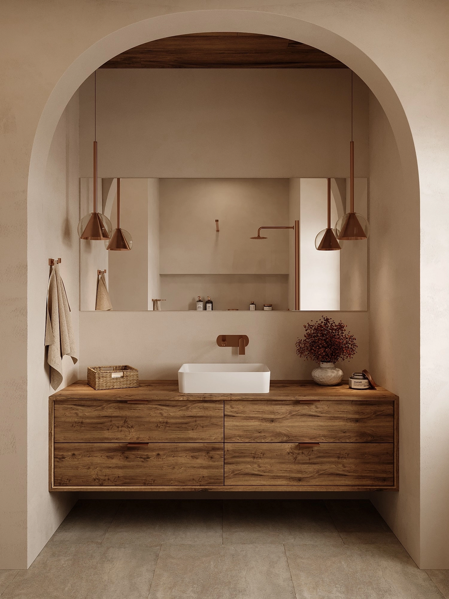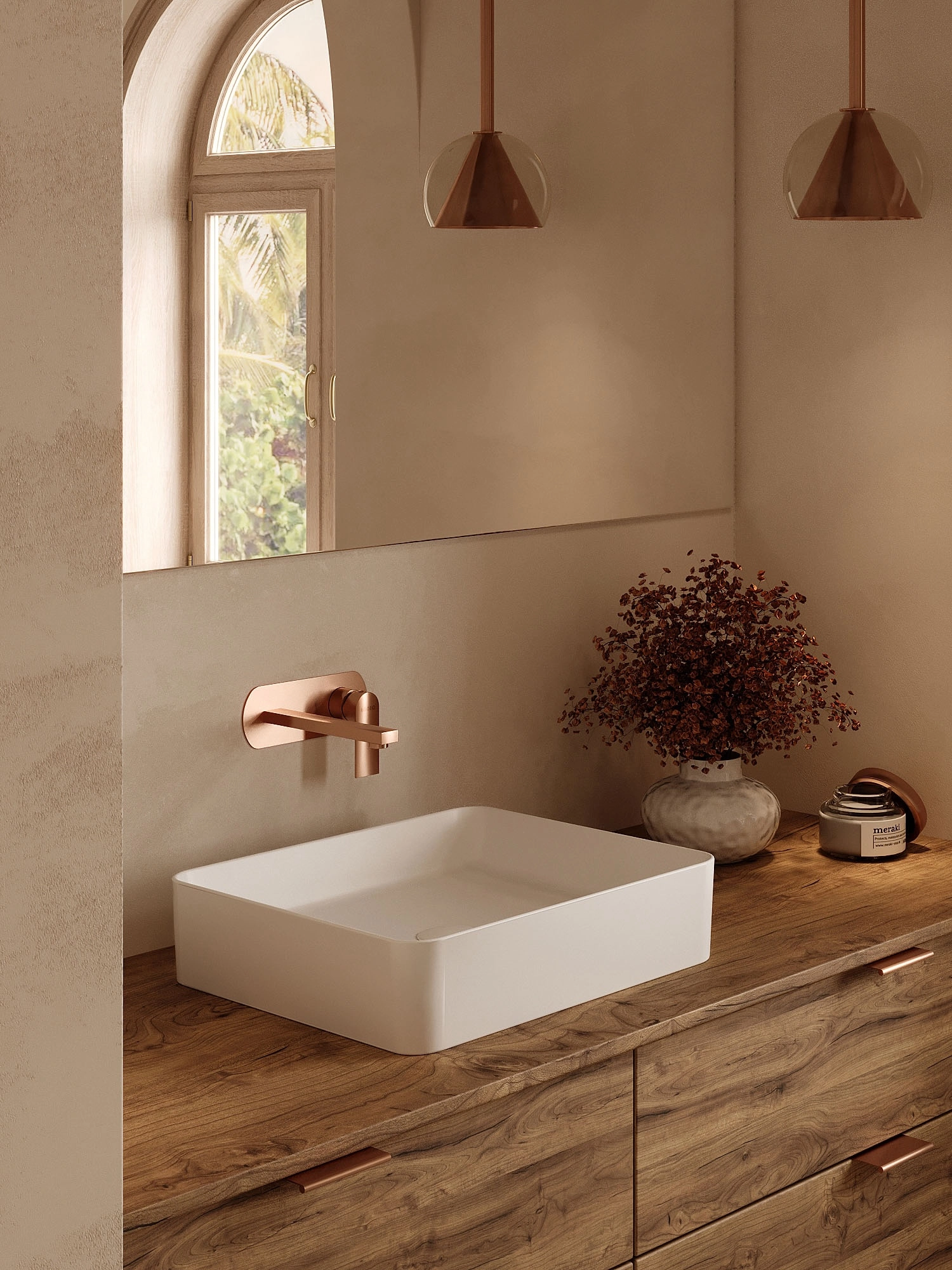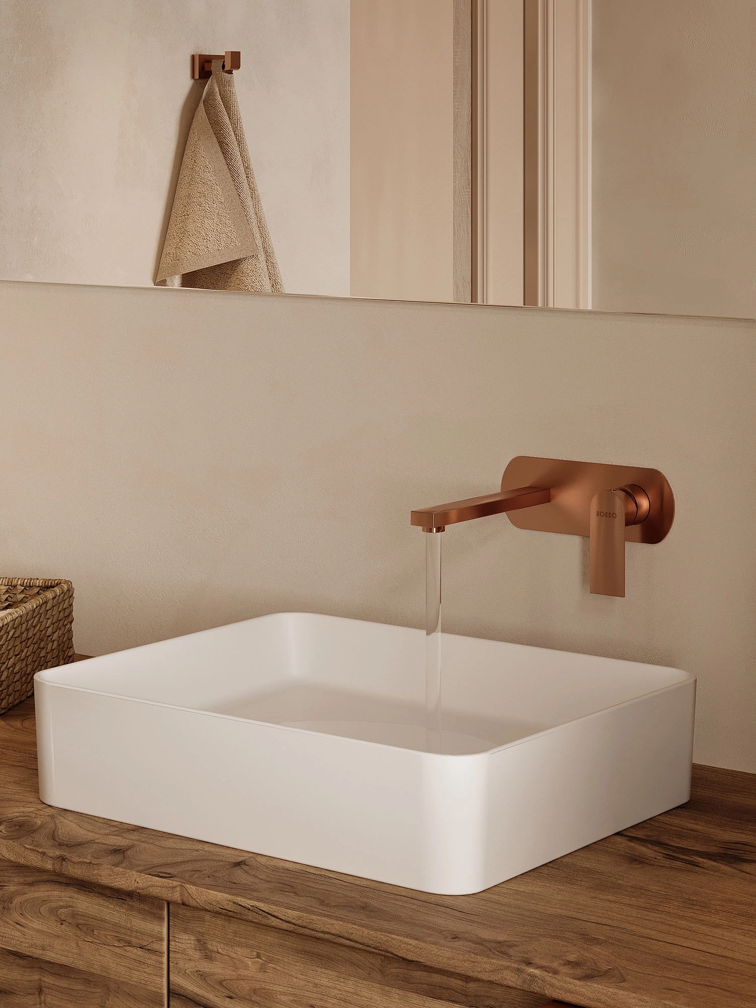 Podtynkowa bateria z kolekcji Arcos została zaprojektowana tak, by harmonijnie wpisać się w architekturę wnętrza.