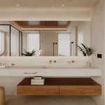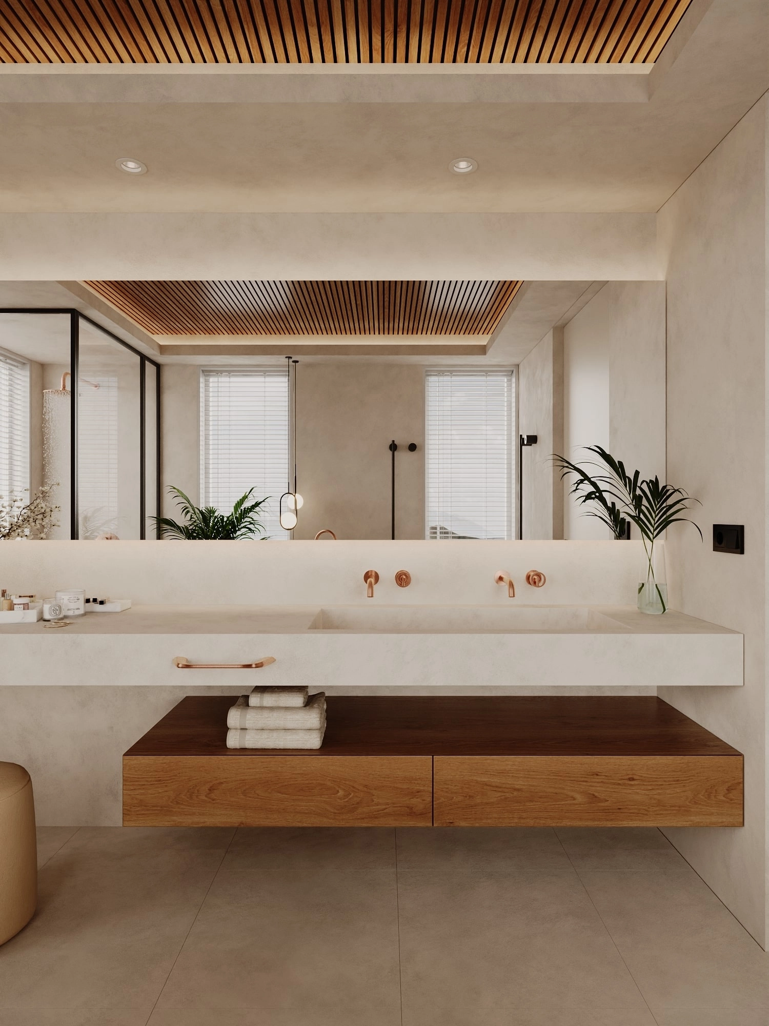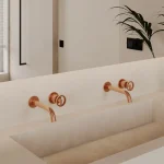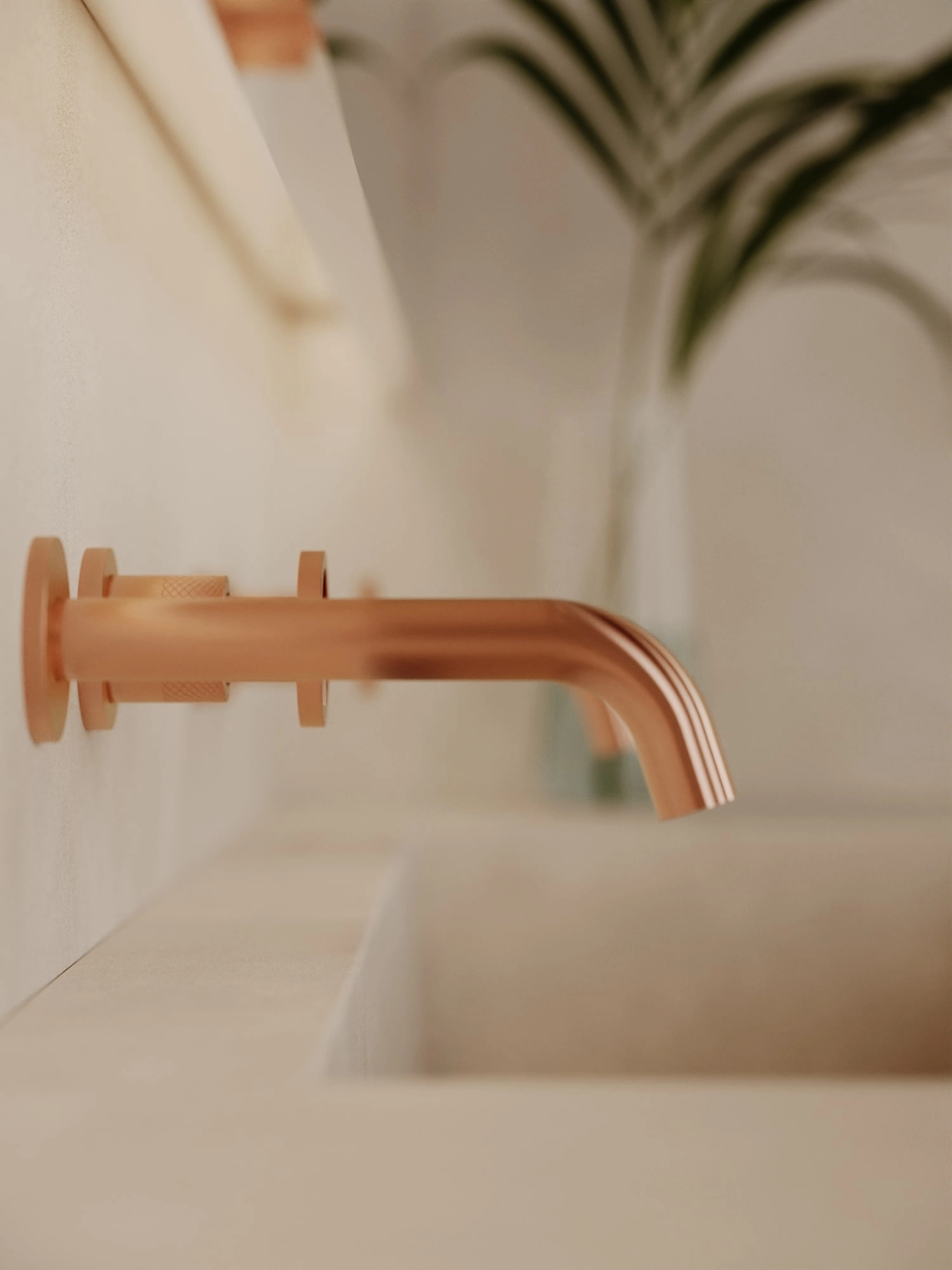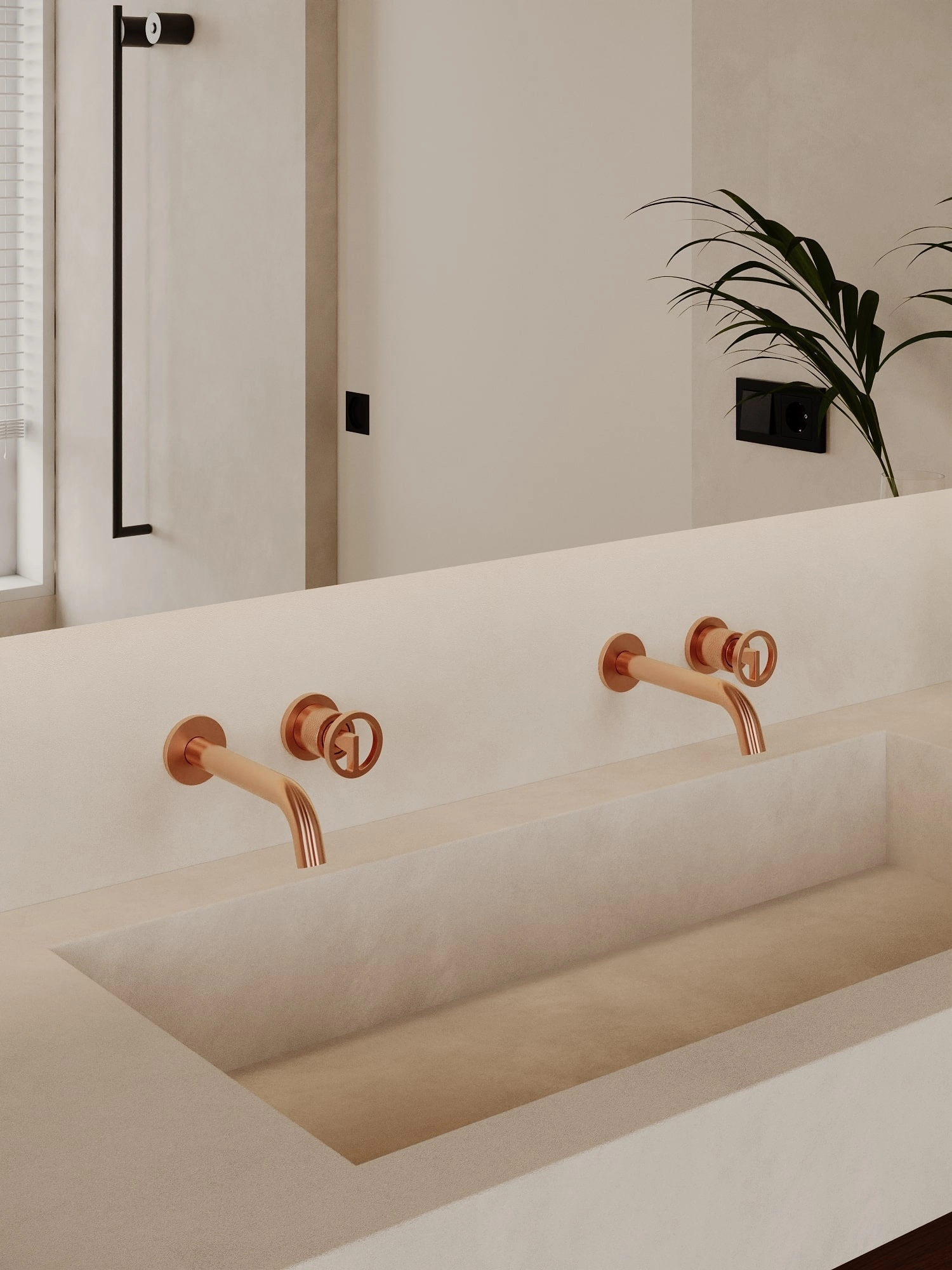 Bateria podtynkowa z kolekcji Nebis to oszczędna geometria, która porządkuje przestrzeń i wpisuje się w linię architektoniczną wnętrza.