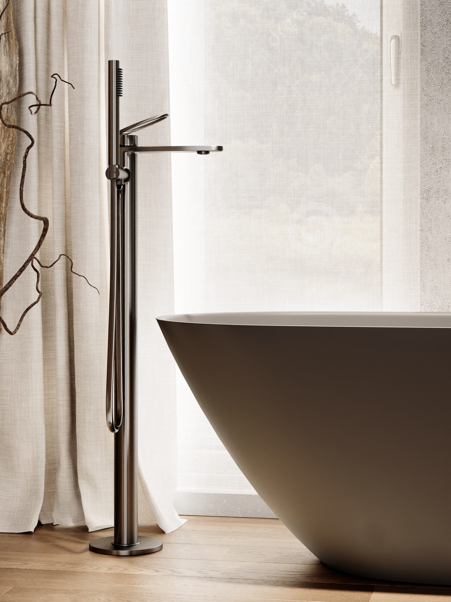 Bateria wannowa wolnostojąca Essia o propozycja do otwartych, starannie zaprojektowanych stref kąpielowych.