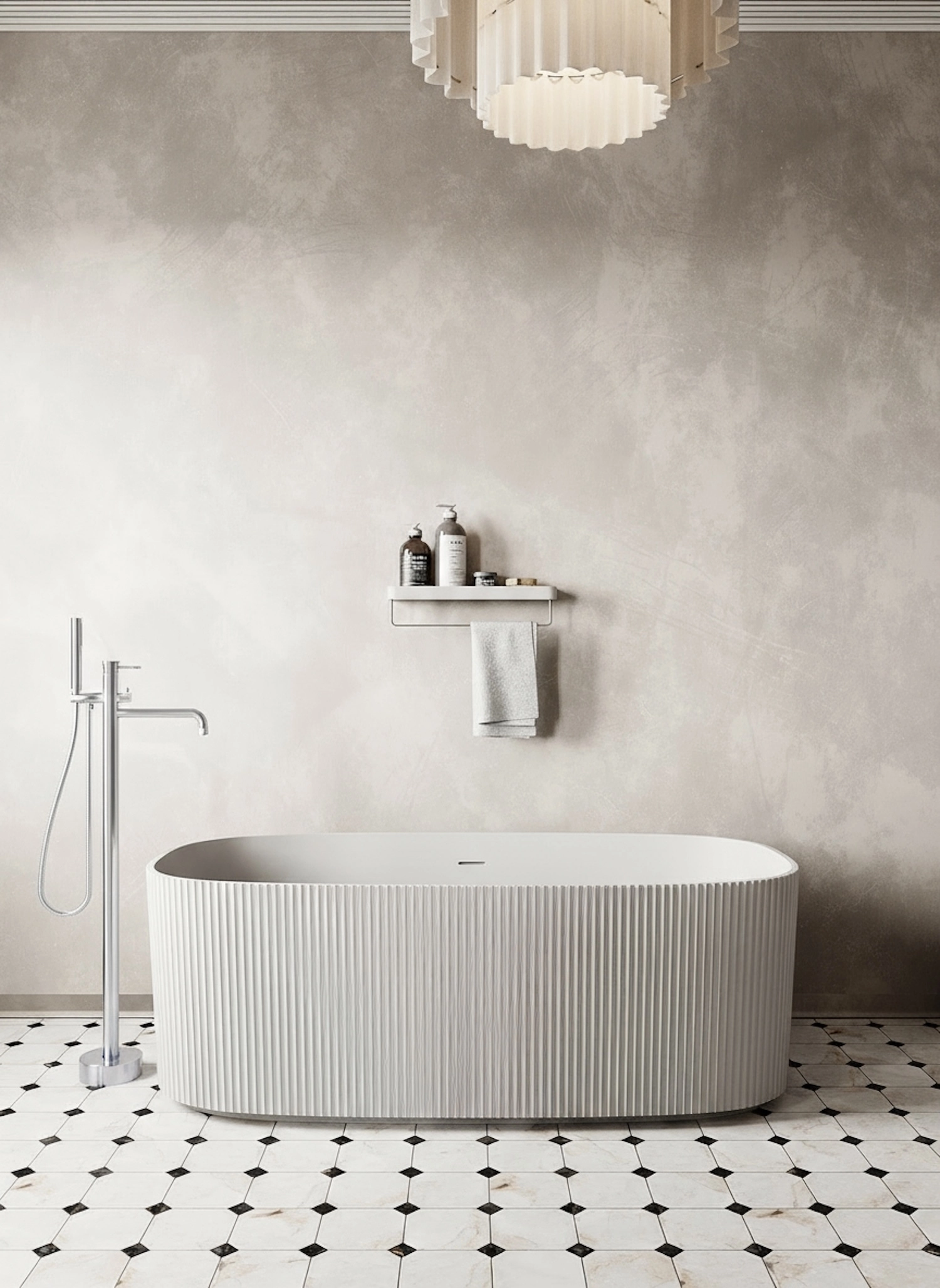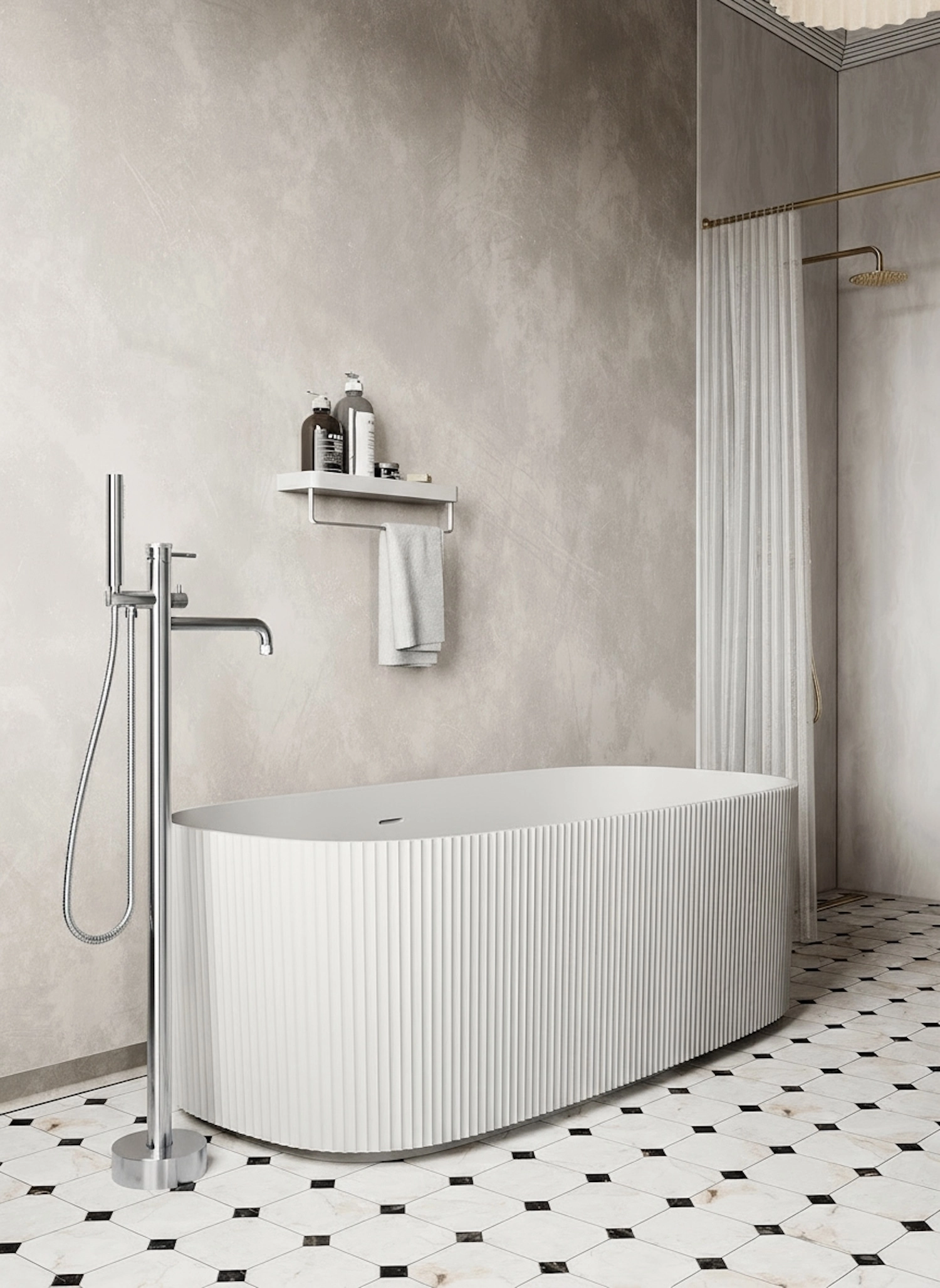Bateria wannowa wolnostojąca Liora została zaprojektowana z myślą o przestrzeniach, w których forma podąża za lekkością i funkcją.