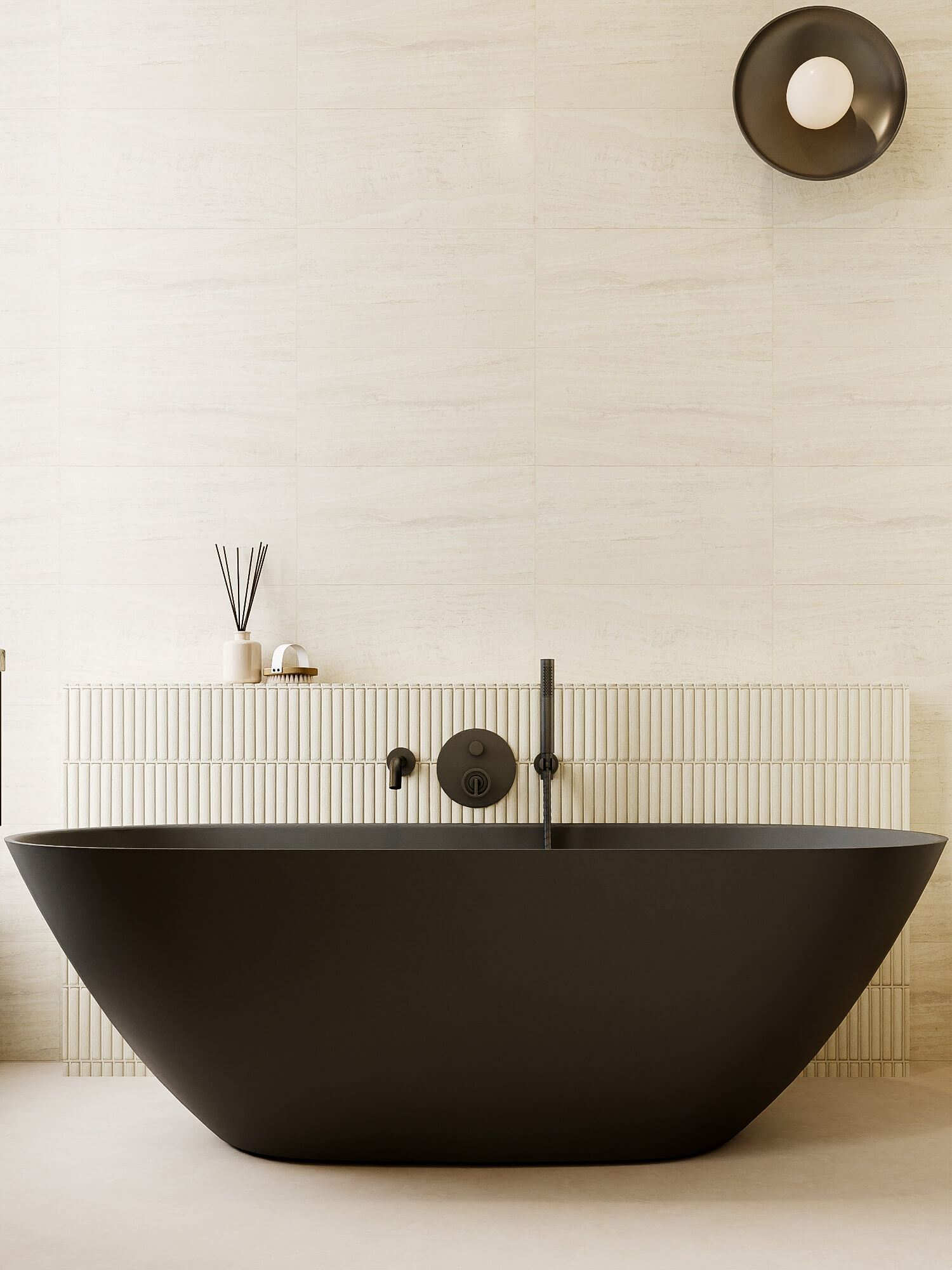 Zestaw wannowy podtynkowy Nebis z słuchawką to forma, która działa dyskretnie — ale z wyczuwalnym porządkiem, spokojem proporcji i świadomą celowością projektu.