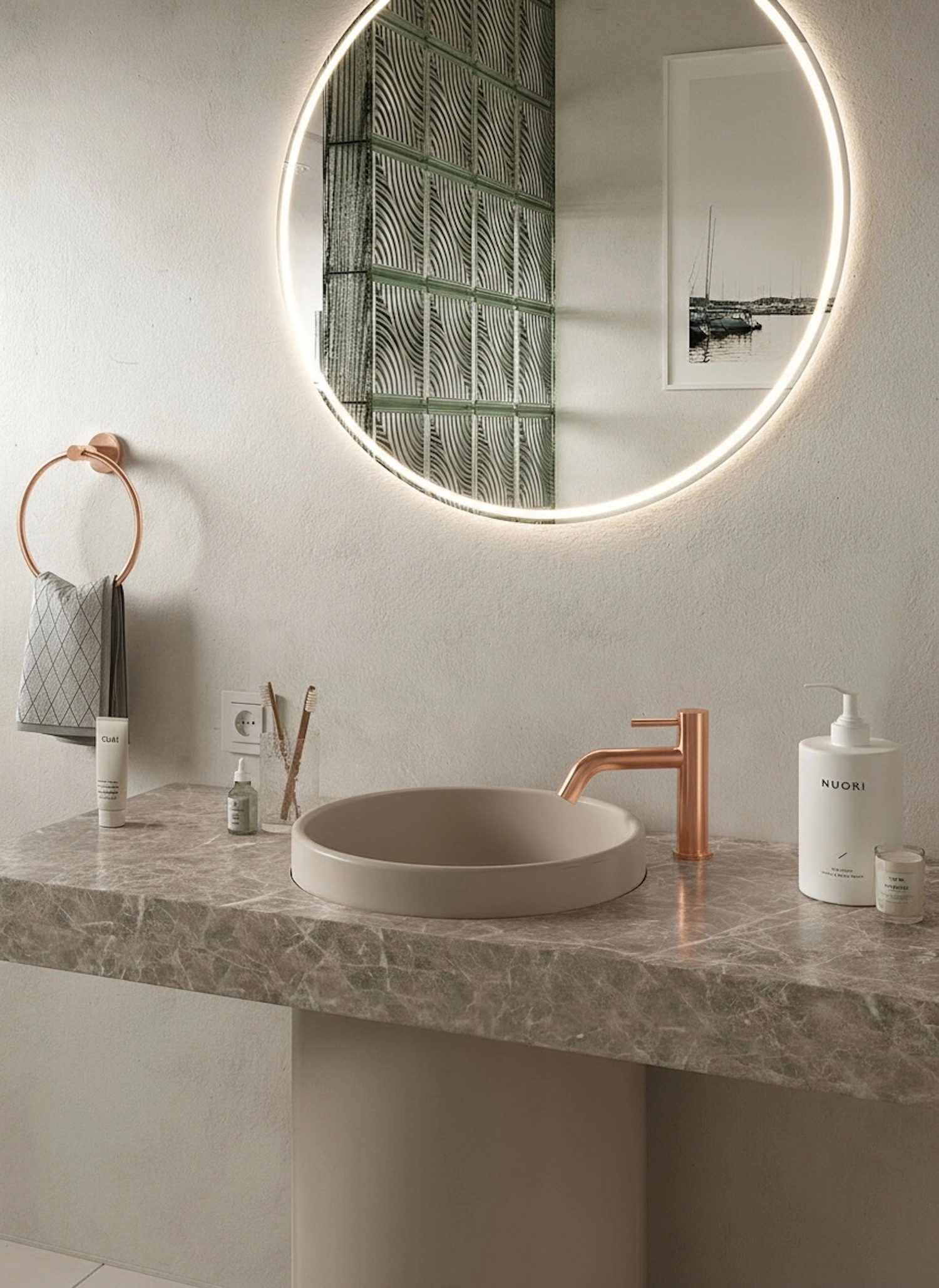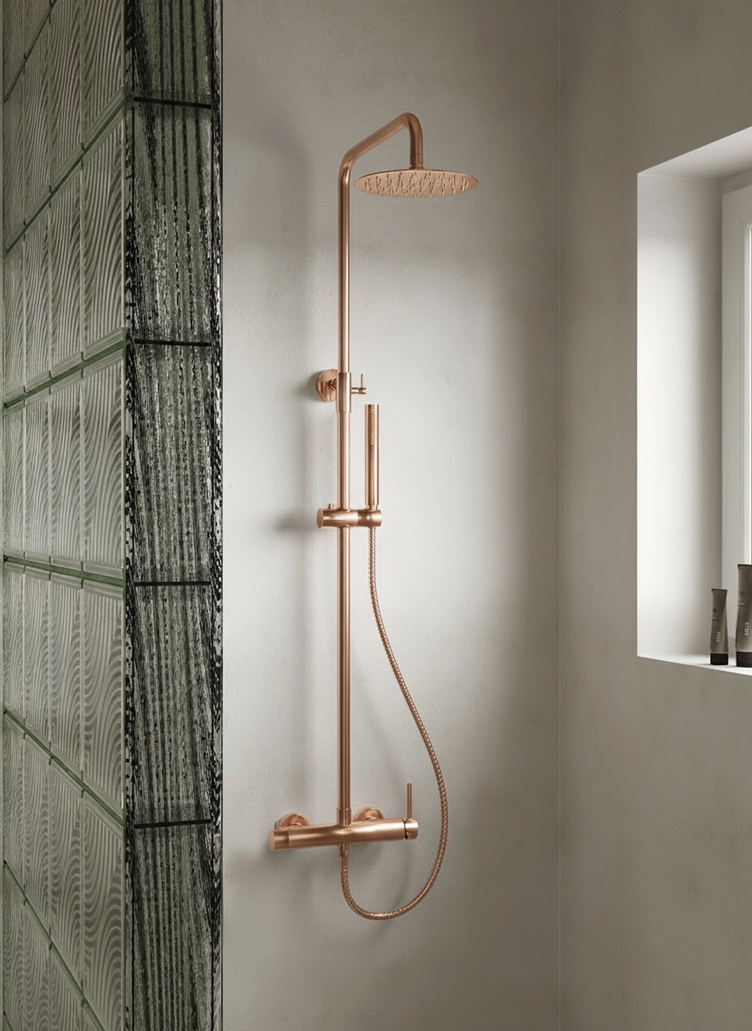 Zestaw prysznicowy natynkowy Structa – różowe złoto szczotkowane