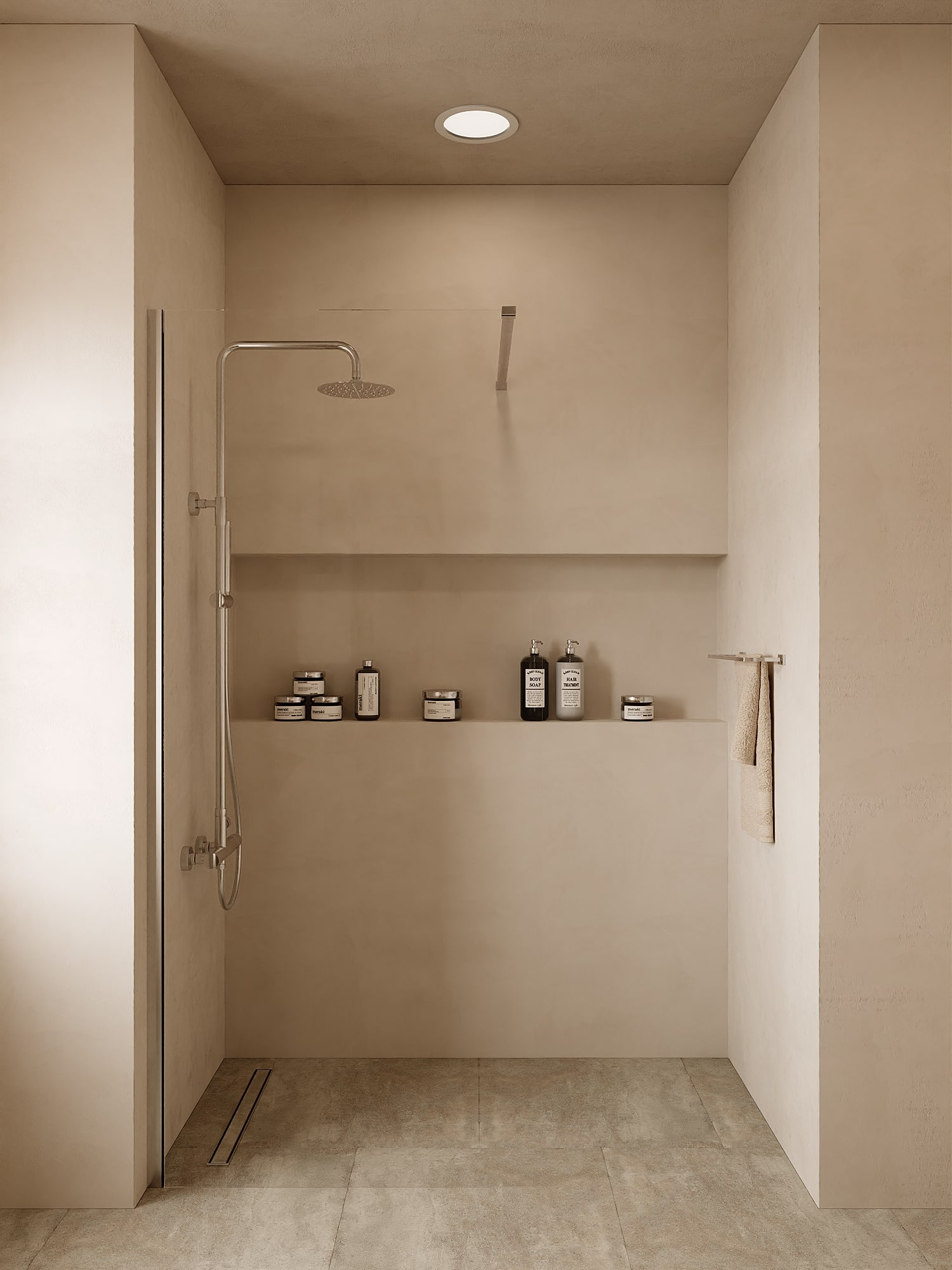 Zestaw prysznicowy natynkowy z kolekcji Vellum to spójny układ, który porządkuje przestrzeń bez zbędnego nadmiaru.