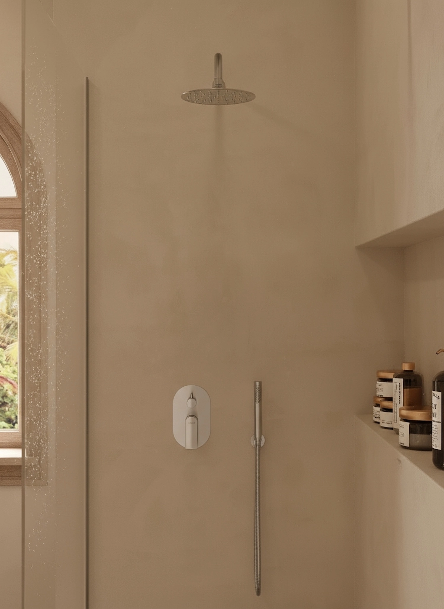 Zestaw podtynkowy z ręczną słuchawką z kolekcji Arcos to stylowe i praktyczne rozwiązanie dla nowoczesnych przestrzeni prysznicowych – czysta forma i maksymalna wygoda.