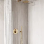 Zestaw prysznicowy podtynkowy z deszczownicą z kolekcji Liora bazuje na klarownej geometrii i starannie dobranych proporcjach, które porządkują przestrzeń strefy natryskowej.