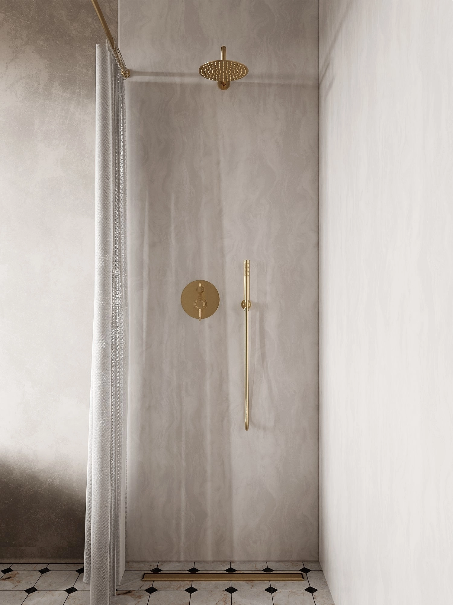 Dzięki starannie skomponowanej palecie wykończeń zestaw z kolekcji Liora pozwala subtelnie zintegrować funkcję prysznicową z rytmem wnętrza.