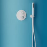 Zestaw prysznicowy podtynkowy z deszczownicą z kolekcji Nebis został opracowany z myślą o uporządkowanej strefie natryskowej.