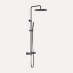 Zestaw prysznicowy termostatyczny natynkowy to rozwiązanie zaprojektowane z myślą o wygodzie użytkowania i czytelnej, uporządkowanej formie. Wyeksponowana konstrukcja pozwala podkreślić charakter armatury, czyniąc ją integralnym elementem aranżacji łazienki.