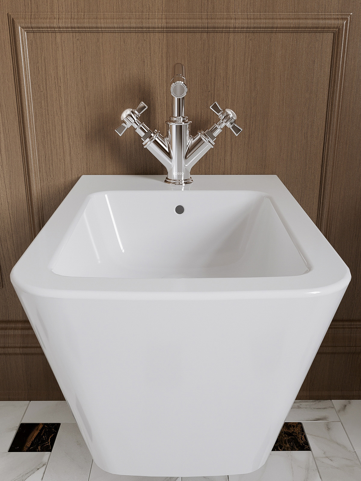Kwadratowa linia i symetryczna bryła bidetu Frame opierają się na czystej geometrii, która porządkuje przestrzeń i nadaje jej wyraźną, architektoniczną strukturę. To forma zaprojektowana z myślą o precyzji i proporcjach — spokojna, wyważona i łatwa do wpisania w różne koncepcje wnętrz, bez narzucania jednego stylu.