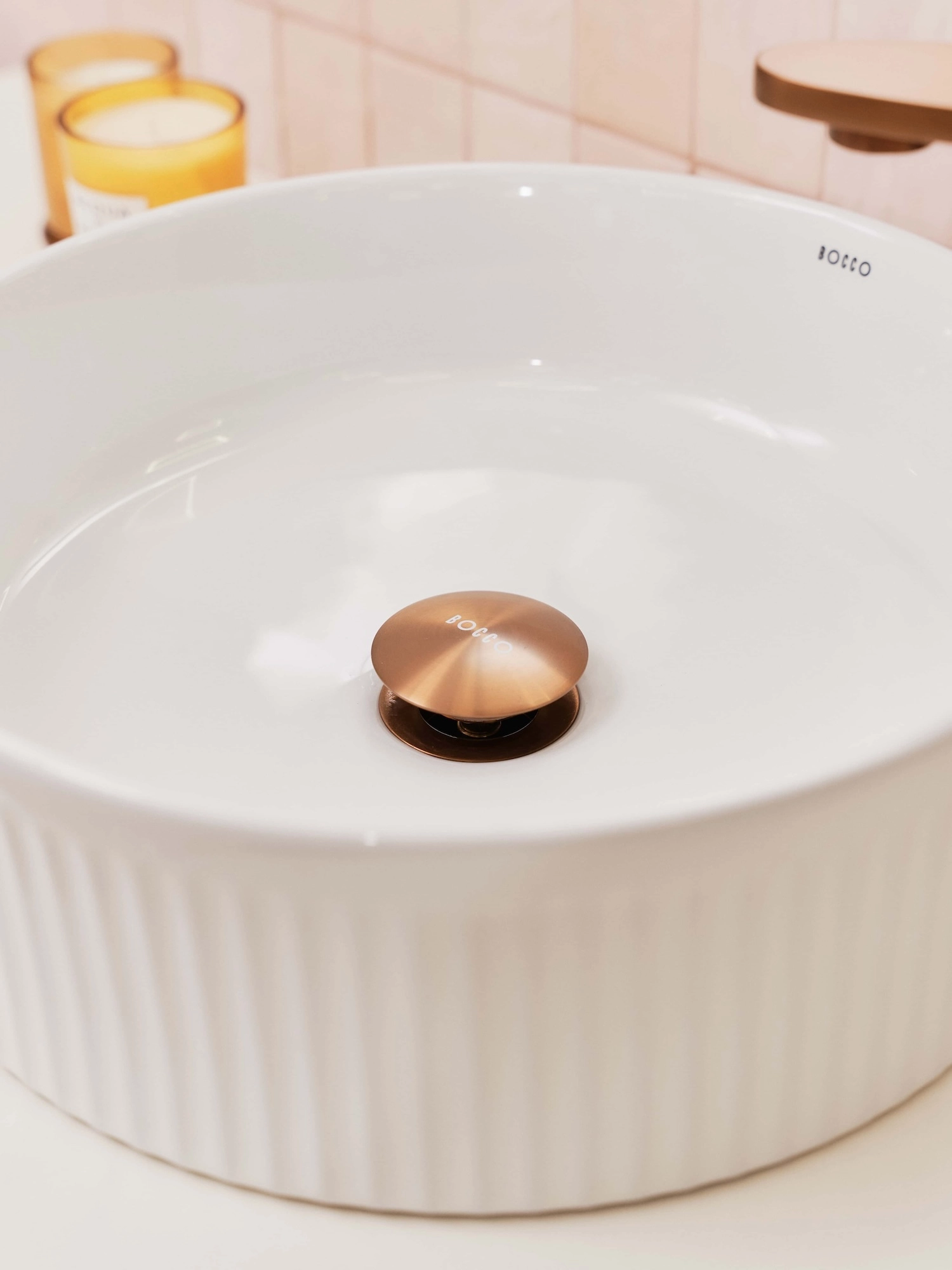 Korek klik-klak wysoki przeznaczony do umywalek z przelewem. Wykonany z trwałego mosiądzu, umożliwia łatwe sterowanie odpływem jednym naciśnięciem.