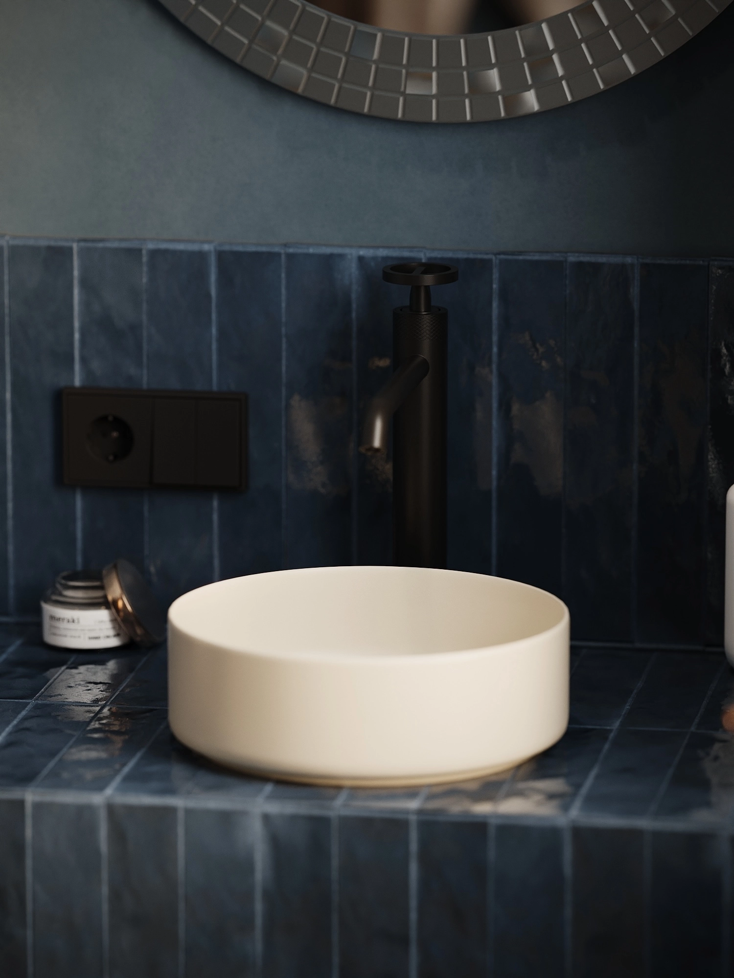 Zaprojektowana z myślą o mniejszych przestrzeniach, okrągła umywalka wnosi lekkość i elegancję do każdej łazienki. Jej proporcje subtelnie nawiązują do biżuteryjnych form – dyskretnych, ale wyrazistych. Doskonale odnajduje się w aranżacjach minimalistycznych, boho czy nowoczesnych, stanowiąc funkcjonalny, a jednocześnie wyrafinowany akcent.