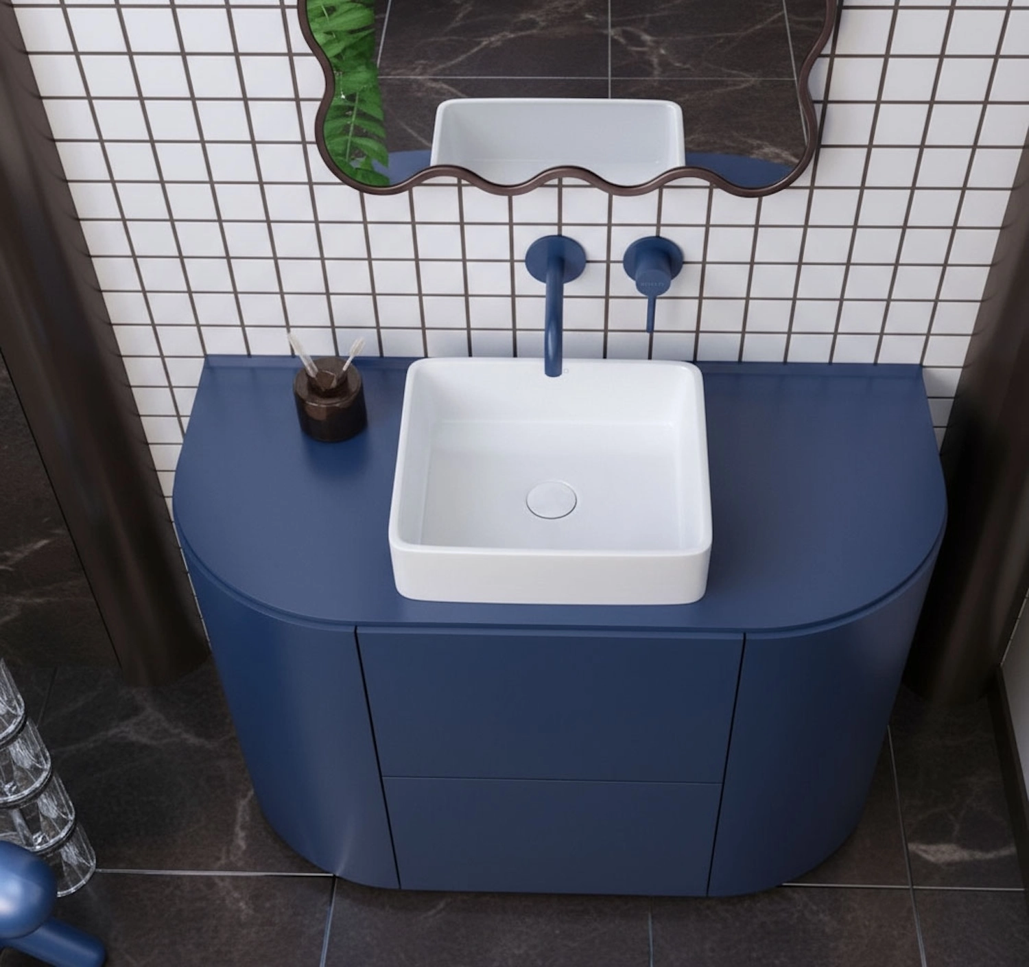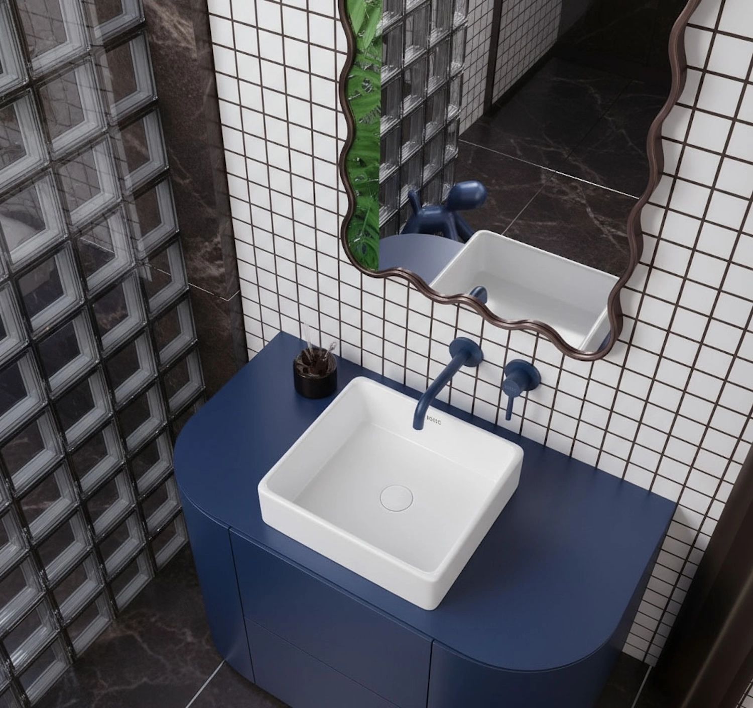 Geometryczna precyzja w parze z elegancją oszczędnych detali. Kwadratowa umywalka Frame doskonale odnajduje się w aranżacjach skandynawskich, japandi czy industrialnych, oferując spójną i harmonijną formę.
