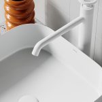 Geometryczna precyzja i elegancja oszczędnych detali definiują charakter kolekcji Frame. Kwadratowa umywalka została zaprojektowana jak architektoniczny element — czysta, wyważona forma porządkuje przestrzeń i nadaje jej wyraźną strukturę, nie dominując aranżacji. To obiekt, który działa jak rama: podkreśla kompozycję wnętrza i wydobywa jego proporcje.