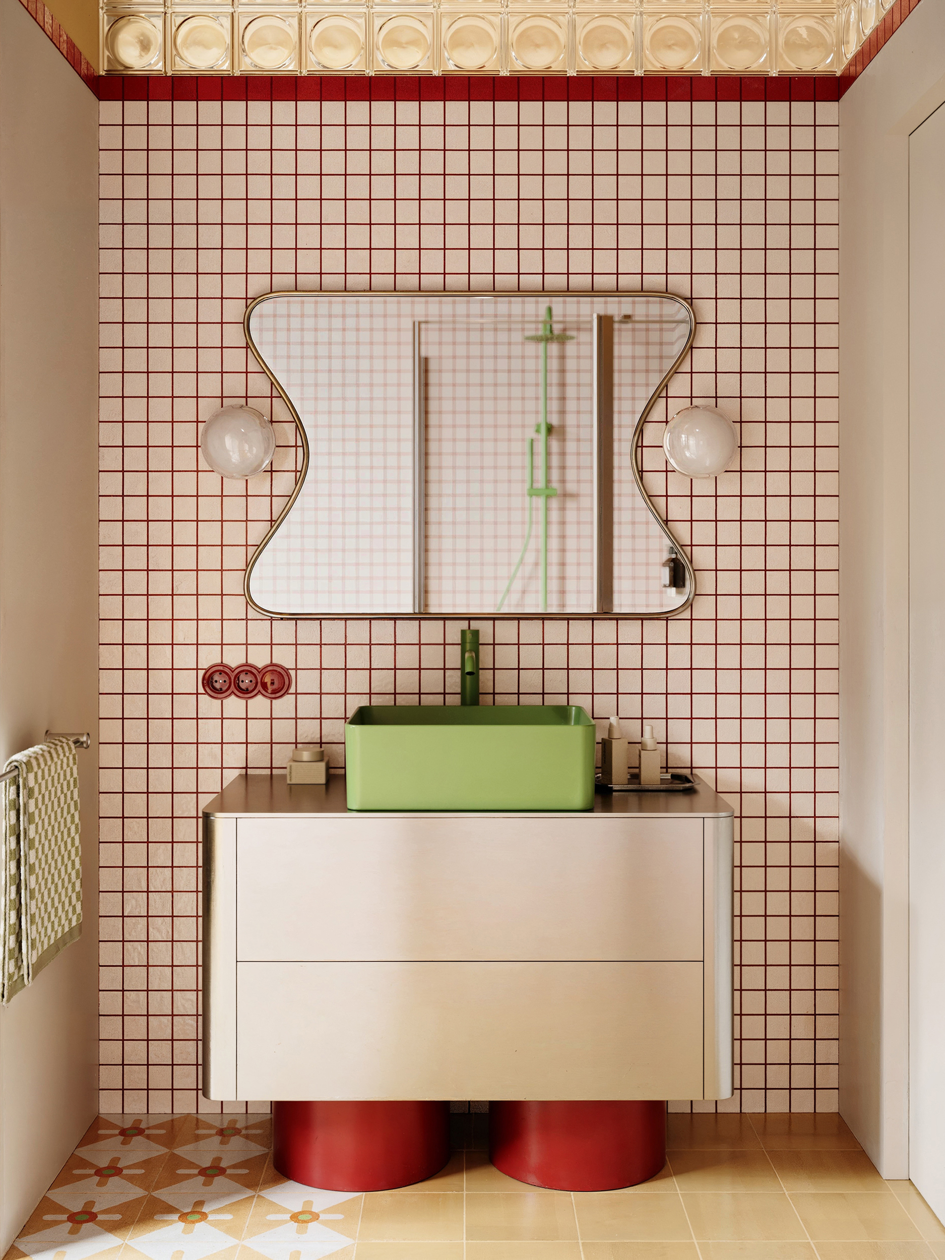 Wyraźnie zarysowane linie i proporcje oparte na geometrii nadają tej umywalce architektoniczny charakter i porządkują przestrzeń bez potrzeby stosowania dodatkowych ozdobników. Prostokątna forma Frame działa jak czysta rama dla aranżacji — definiuje kompozycję, ale nie narzuca jej jednego kierunku.