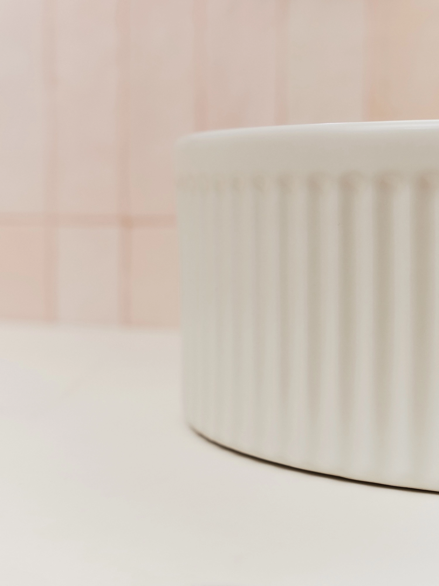 Rytmiczne, wertykalne ryflowanie nadaje tej nowoczesnej bryle subtelnej głębi i lekkości. Geometryczny kształt sprawia, że doskonale odnajduje się w aranżacjach minimalistycznych, japandi czy loftowych, tworząc wyrazisty punkt skupienia we wnętrzu.