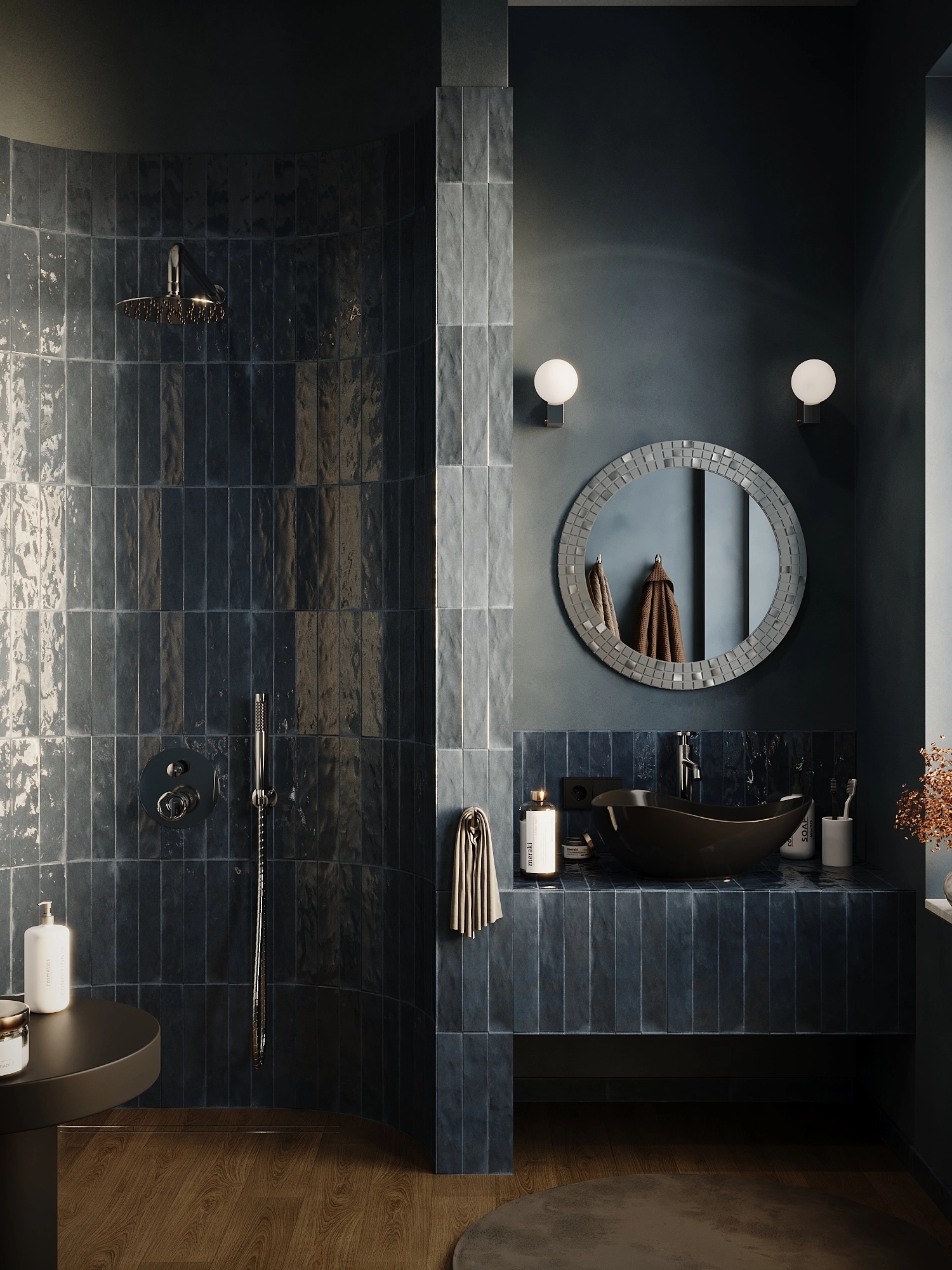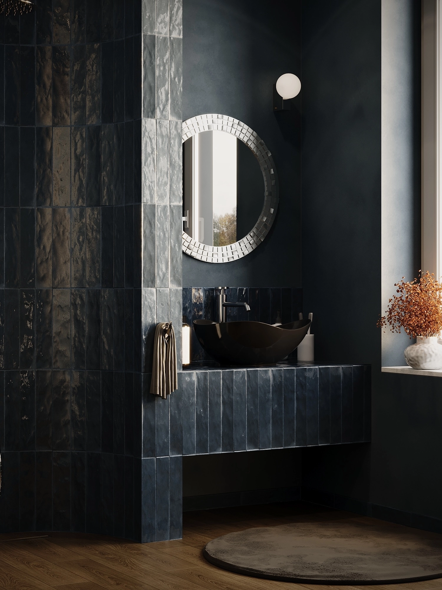 Gładka powierzchnia i subtelny detal wprowadzają spokój, tworząc łazienkę pełną harmonii.
